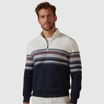 Класически пуловер с полу цип и многоцветни ивици, който придава уникален и изискан вид. Проектиран за комфорт и стил, перфектен за работа и свободно време.