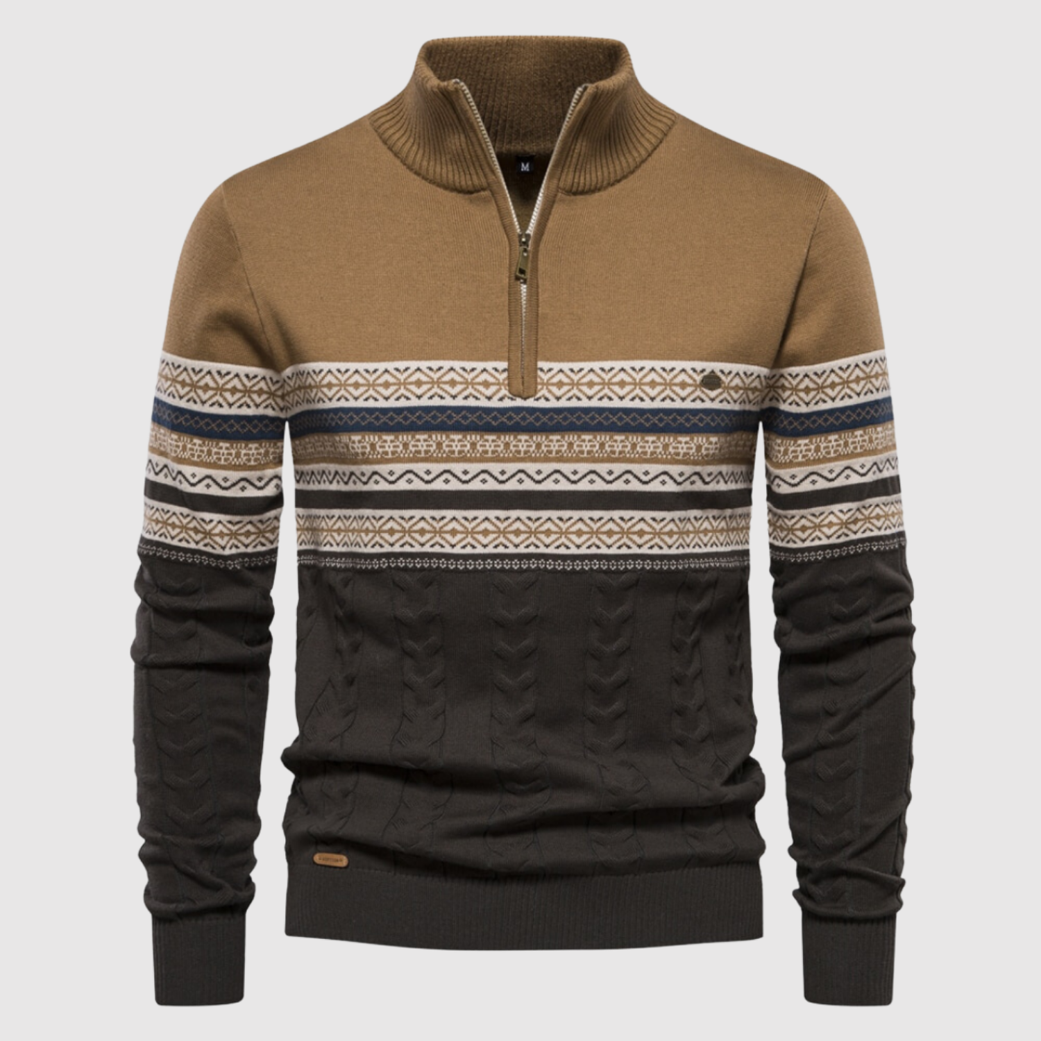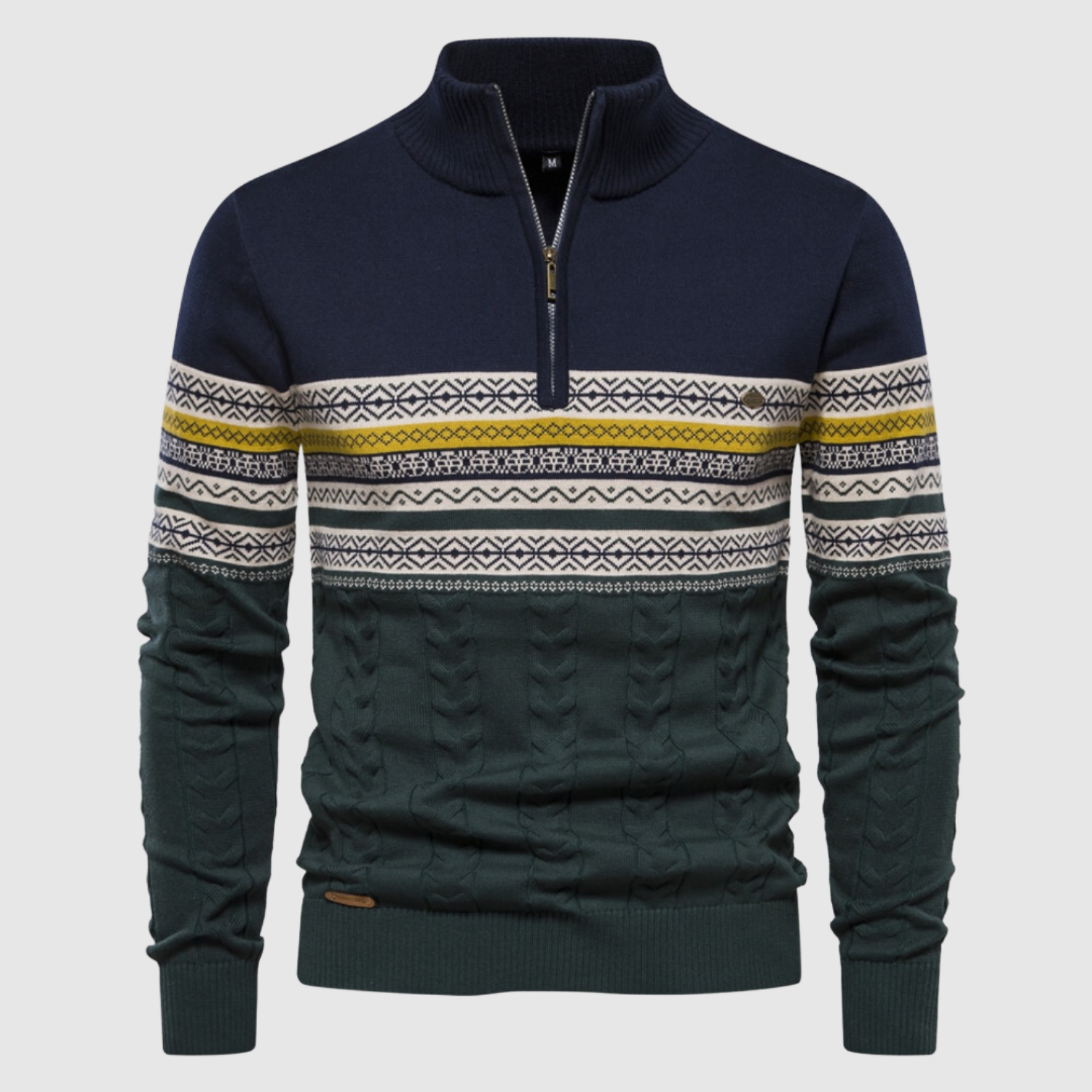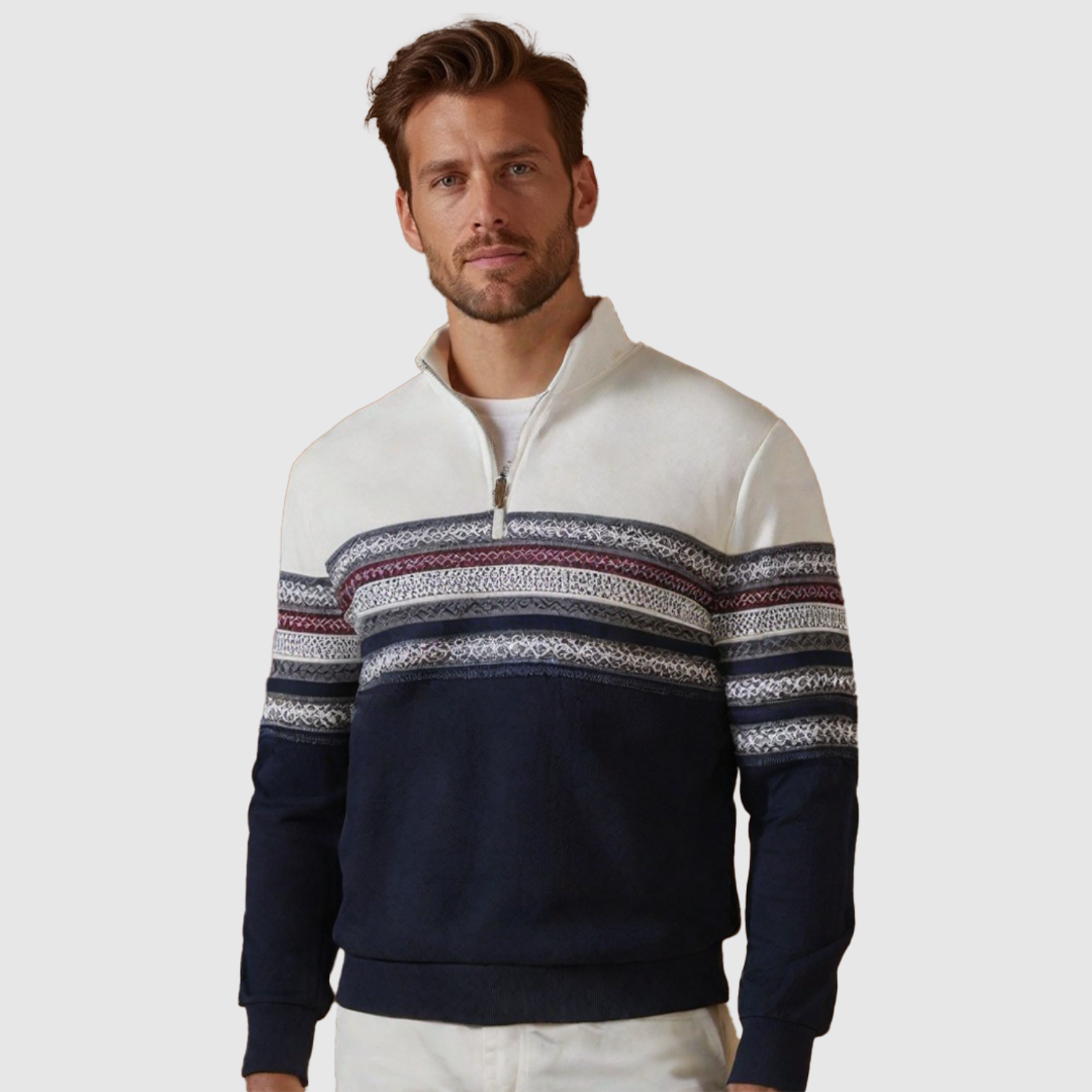 Даниел – Пуловер с полу цип и многоцветни ивици