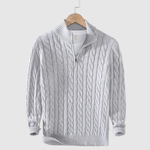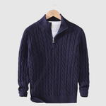 Класическа стръкна блуза с модерна кабелна шарка и цип на врата, която съчетава комфорт и стил. Перфектна за многослойно облекло или сама по себе си като стилен избор за ежедневието.