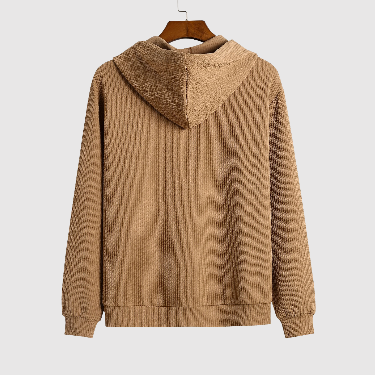 Модерно худи с уникален рибен плетен дизайн, който придава стилен и неформален вид. То е както топло, така и удобно, идеално за хладни дни, когато комфортът и стилът трябва да вървят ръка за ръка.