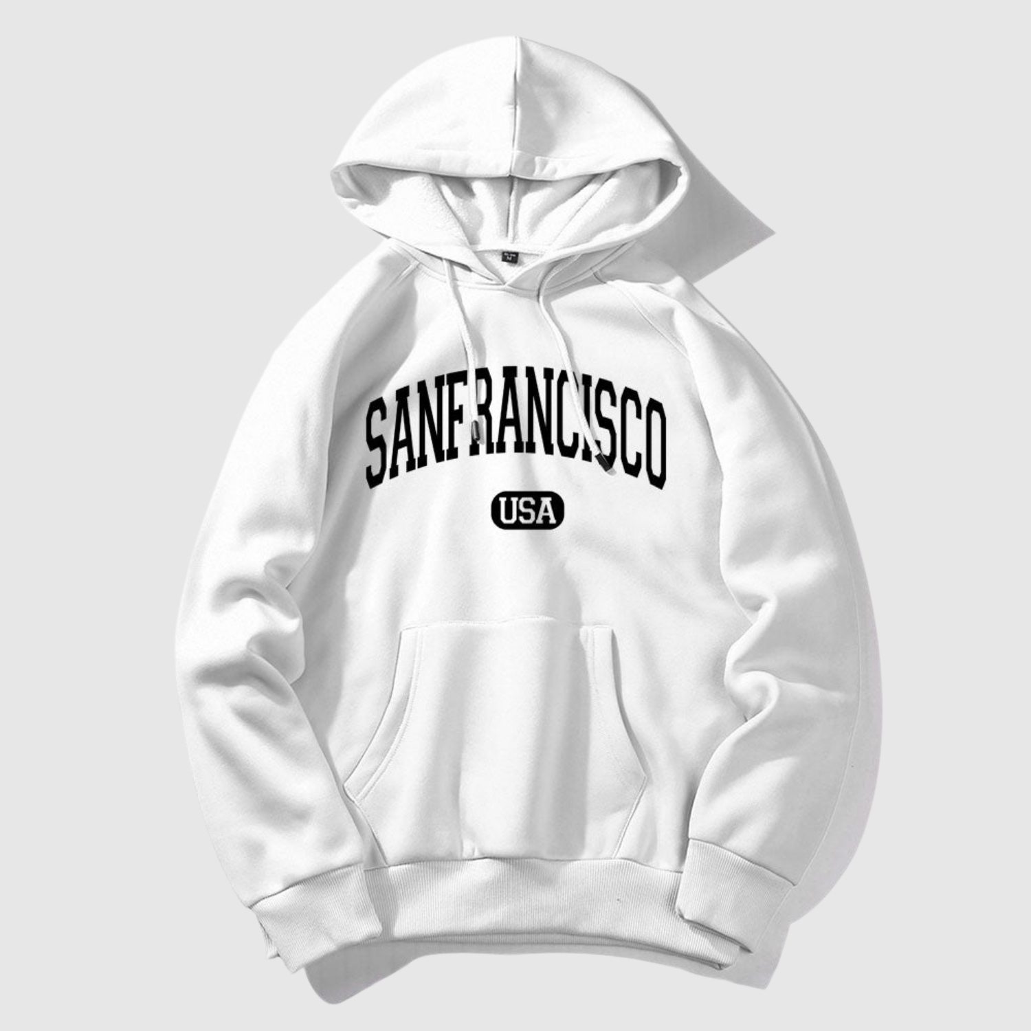 Вечен худи с принт "Сан Франциско", който придава спортен и младешки вид. Меката смес от памук осигурява комфорт през целия ден, перфектна както за релаксация, така и за улична мода.