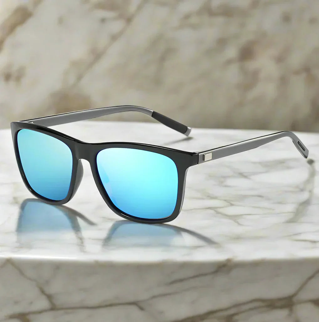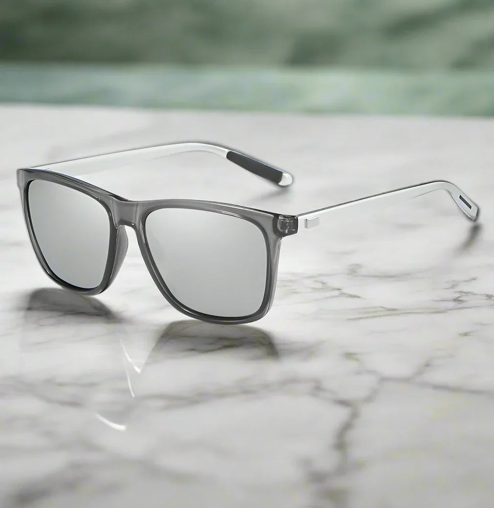 Пара елегантни авиационни слънчеви очила с огледално стъкло, които съчетават безвременен стил с модерна комфорт. Леките рамки осигуряват удобно прилягане, докато тонованите лещи предлагат ефективна защита от слънчевите лъчи. Перфектни за ежедневна употреба и пътувания.
