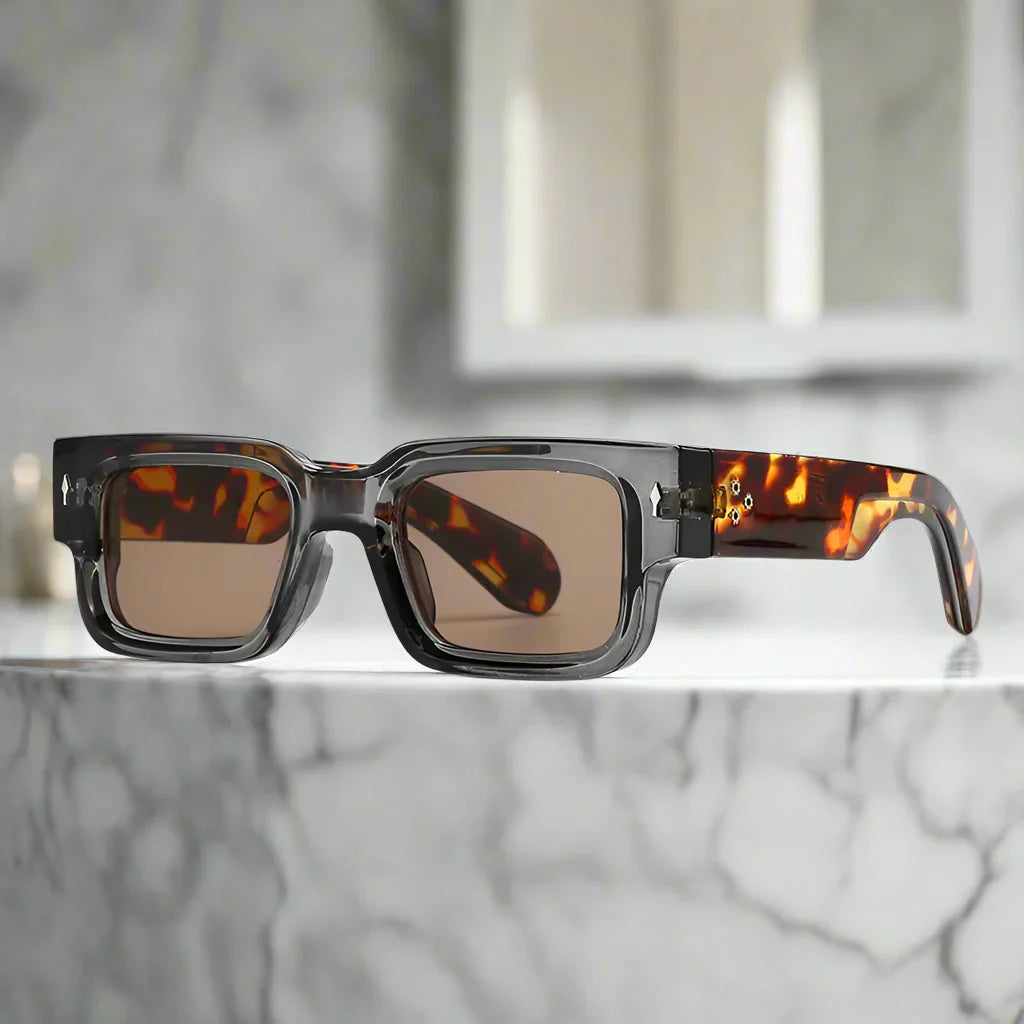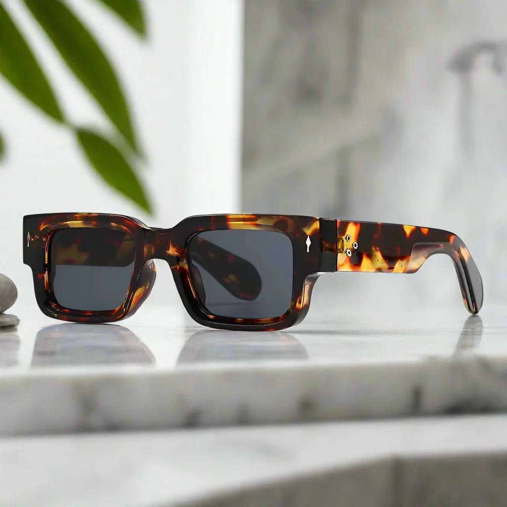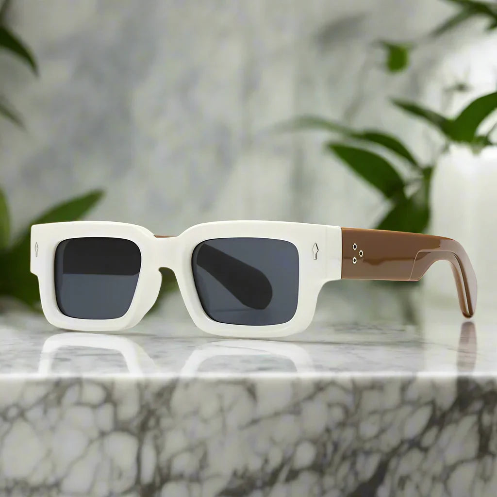 Тези слънчеви очила съчетават модерния квадратен дизайн с мощна рамка, което придава изразителен и уверено излъчване. Перфектни за вас, които искате да добавите градска и модна детайлност към летните си аутфити.