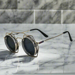 Тези кръгли слънчеви очила съчетават класически ретро дизайн с модерни детайли. Лека метална рамка и различни цветове придават вечен вид, идеален както за ежедневна употреба, така и за специални поводи.