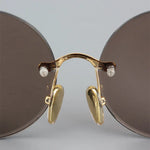 Тези кръгли слънчеви очила без рамка предлагат елегантен и лек вид, перфектен за изискан стил. Тънките метални части, комбинирани с тонвани стъкла, осигуряват както комфорт, така и луксозен дизайн. Вечно решение за модни ентусиасти, които търсят дискретен, но забележим вид.