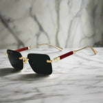 Комплект модерни правоъгълни слънчеви очила с елегантни златни детайли и тонирани стъкла. Уникалната комбинация от цветове и материали на рамката придава луксозен вид, докато формата е лека и удобна. Перфектни за повдигане на всяко облекло с нотка на елегантност.