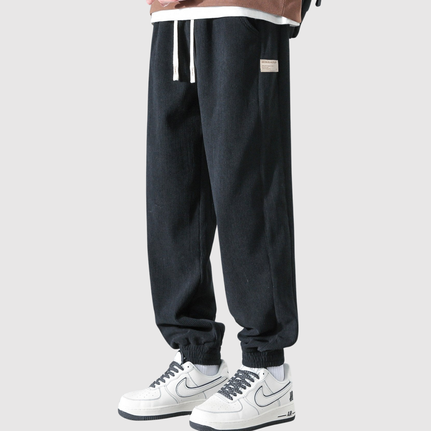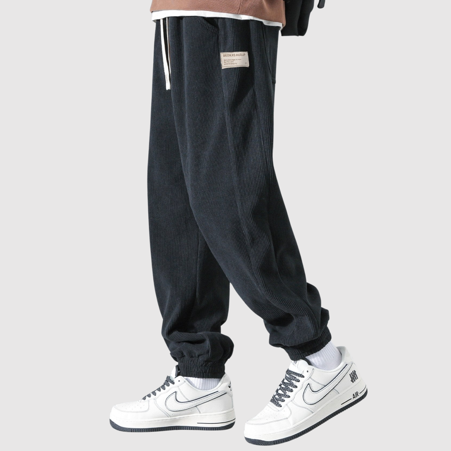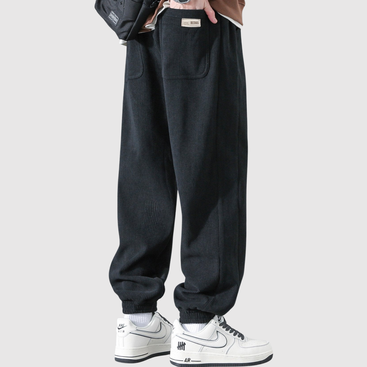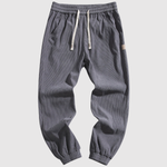 Тези джогъри са изработени от мека рибена материя, която предлага както релаксиран, така и стилен вид. С еластична талия и просторна кройка, те са перфектни за ежедневието или неформални активности.