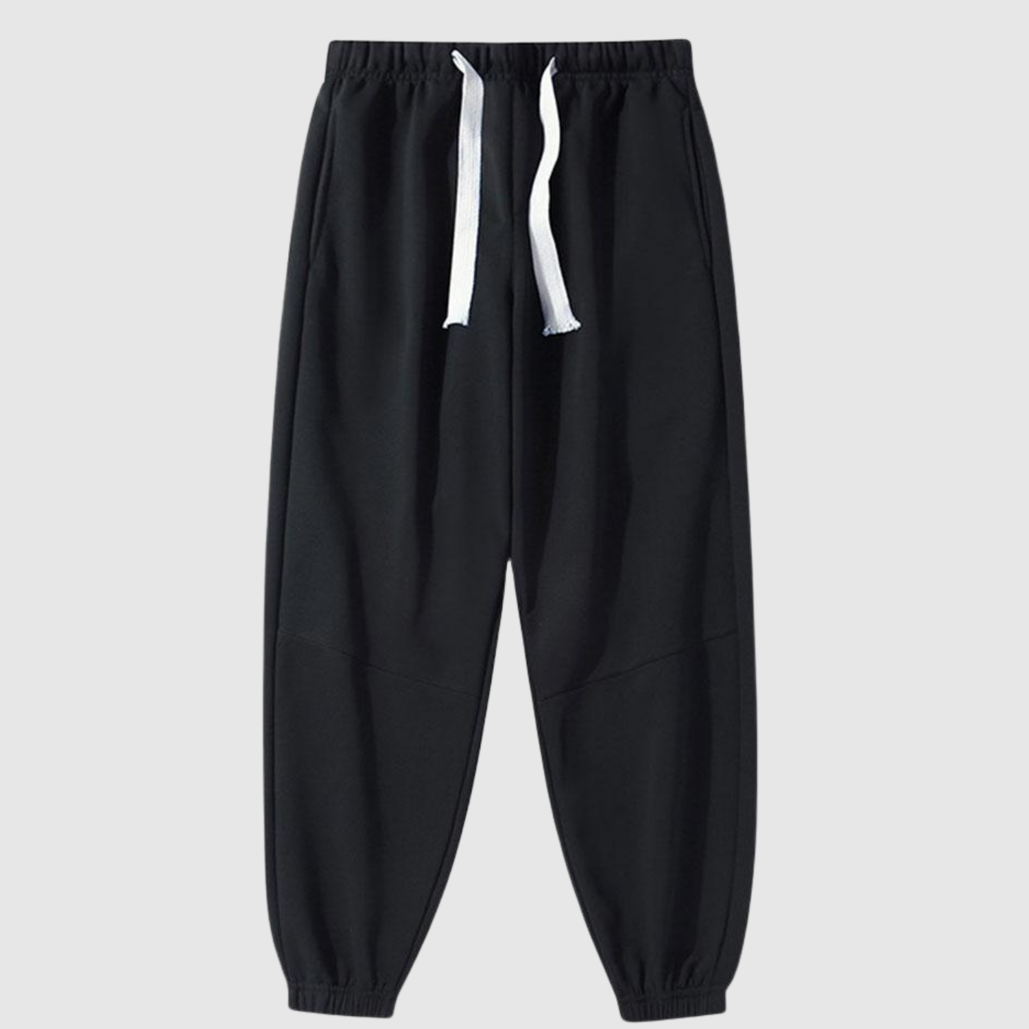 Тези джогери с връзки комбинират класически вид с удобство. Еластичният талия с регулируеми връзки осигурява гъвкавост, докато леката материя ги прави идеални както за спорт, така и за свободно време.