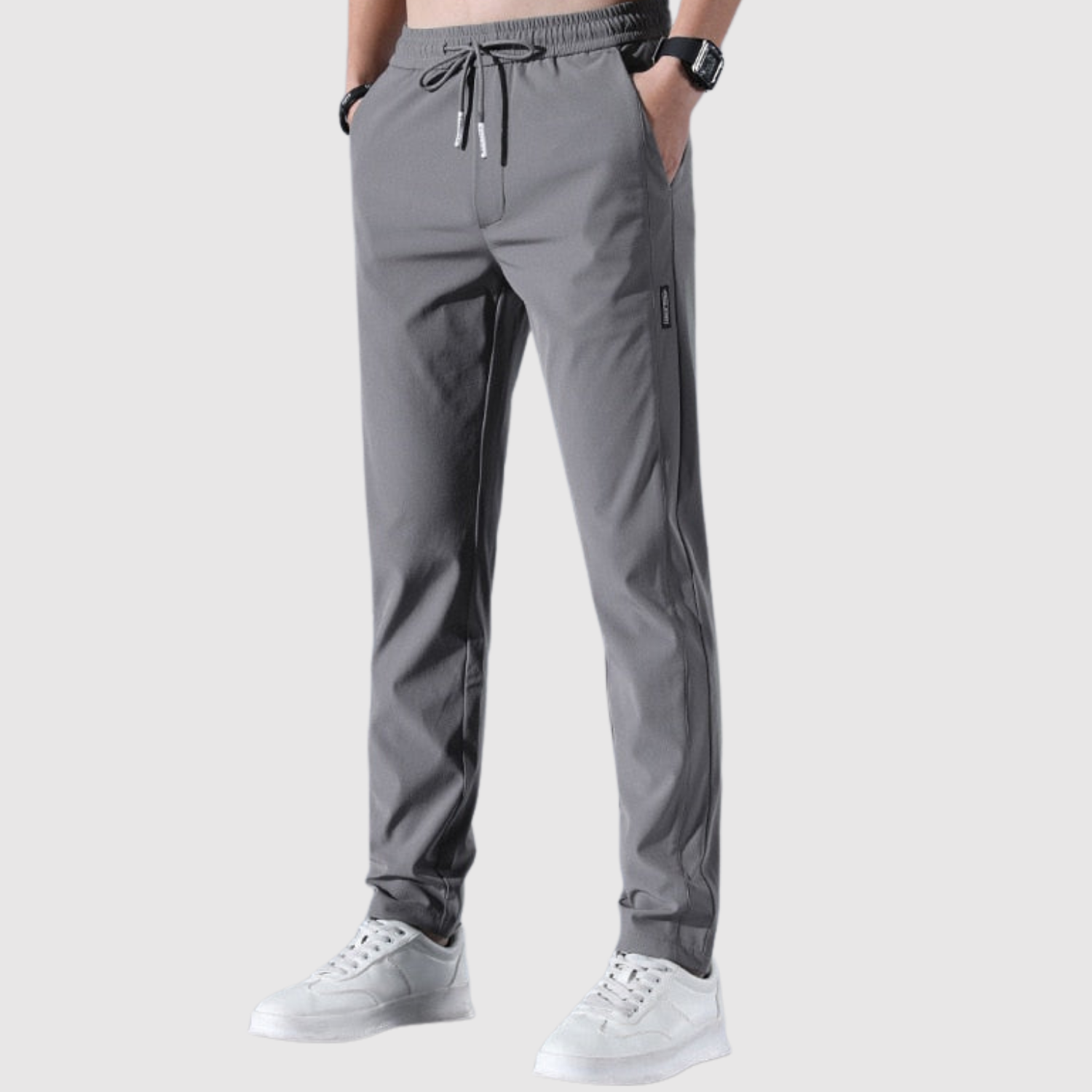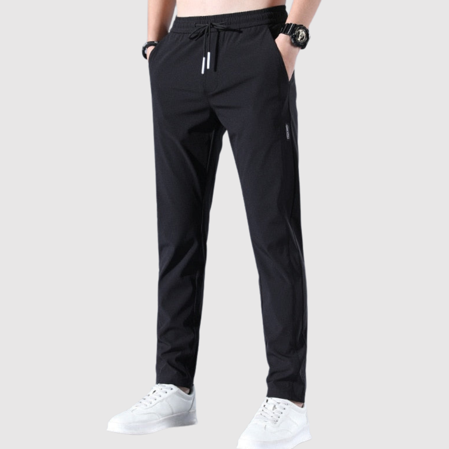 Тези спортни панталони съчетават комфорт и гъвкавост с елегантен силует. Лекото и дишащо материало осигурява максимална свобода на движение, докато еластичният колан гарантира добро прилягане. Идеални за спорт и свободно време.