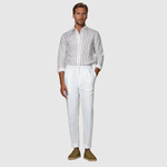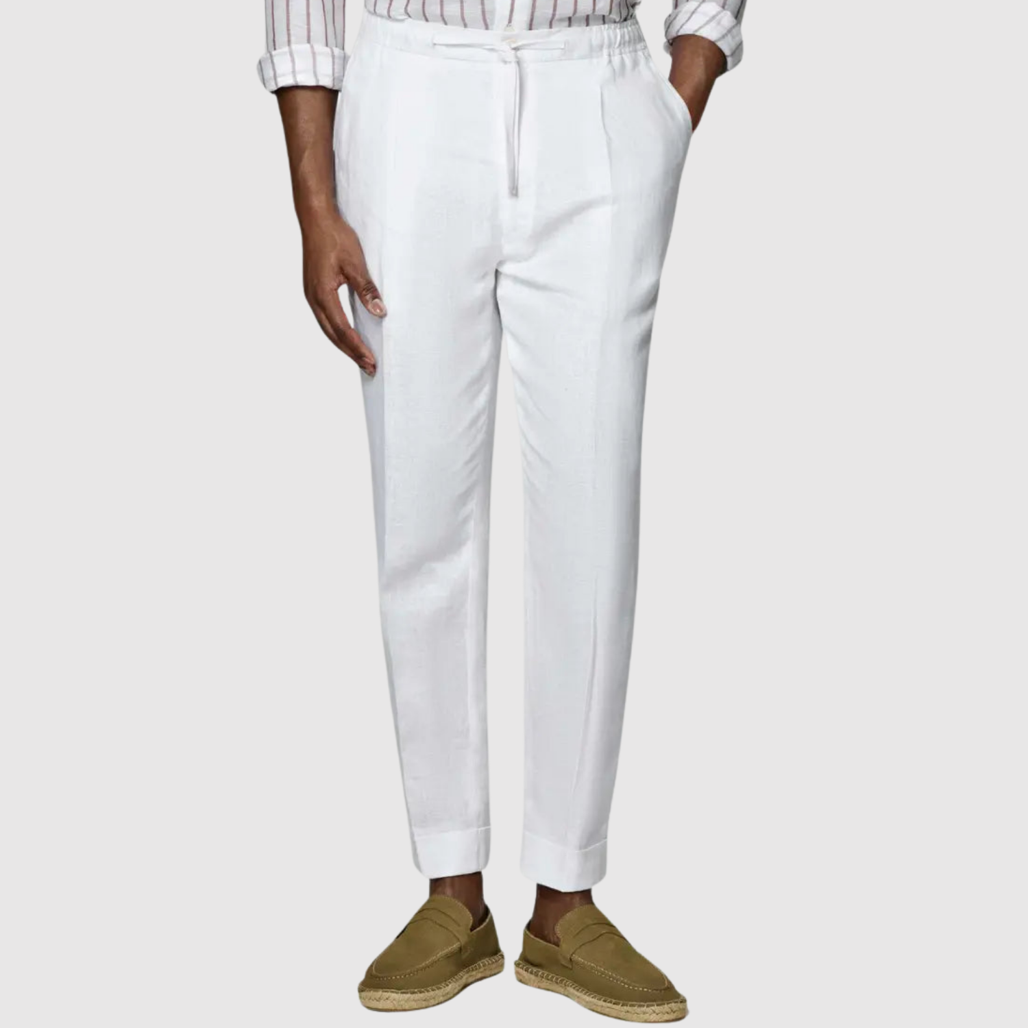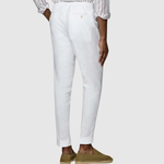 Тези ленени панталони предлагат чист и стилен вид. Класическият кройка в комбинация с лек материал ги прави перфектни както за ежедневна употреба, така и за летни поводи.