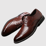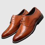 Тези елегантни мъжки обувки съчетават класически дизайн с модерни брош детайли, които придават уникален и изтънчен вид. Издръжливата кожа и меката стелка осигуряват високо ниво на комфорт, докато вечната силуета прави обувките идеални за всичко - от бизнес срещи до сватби.
