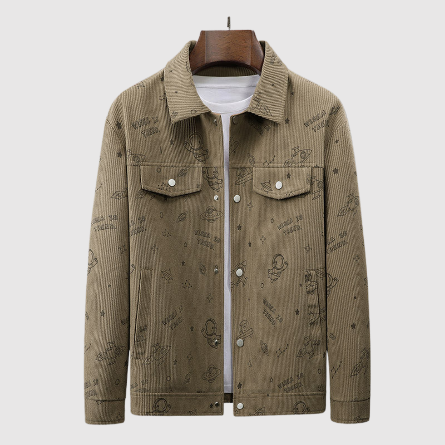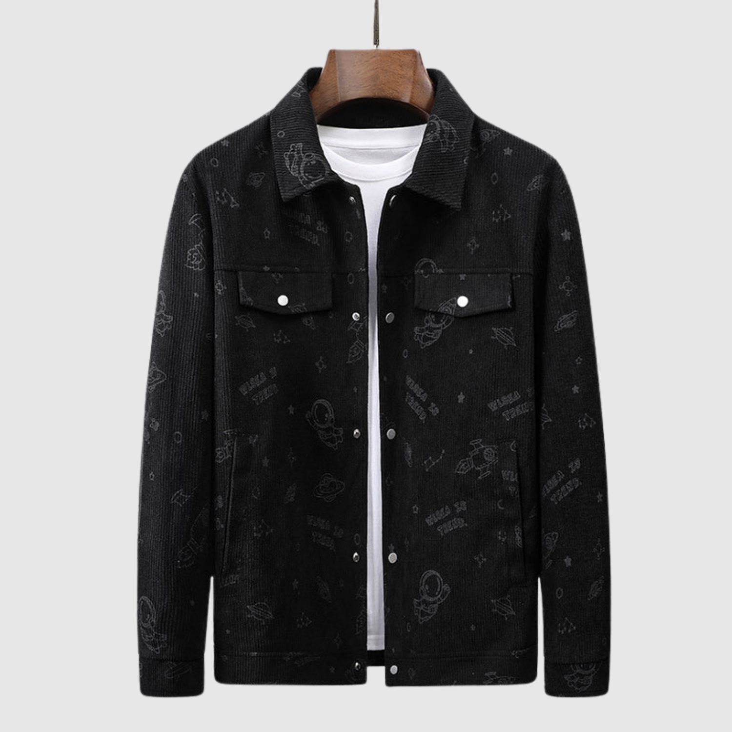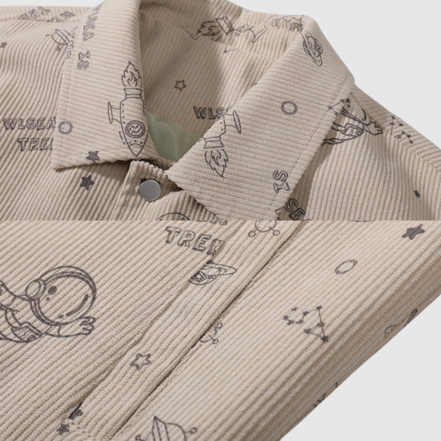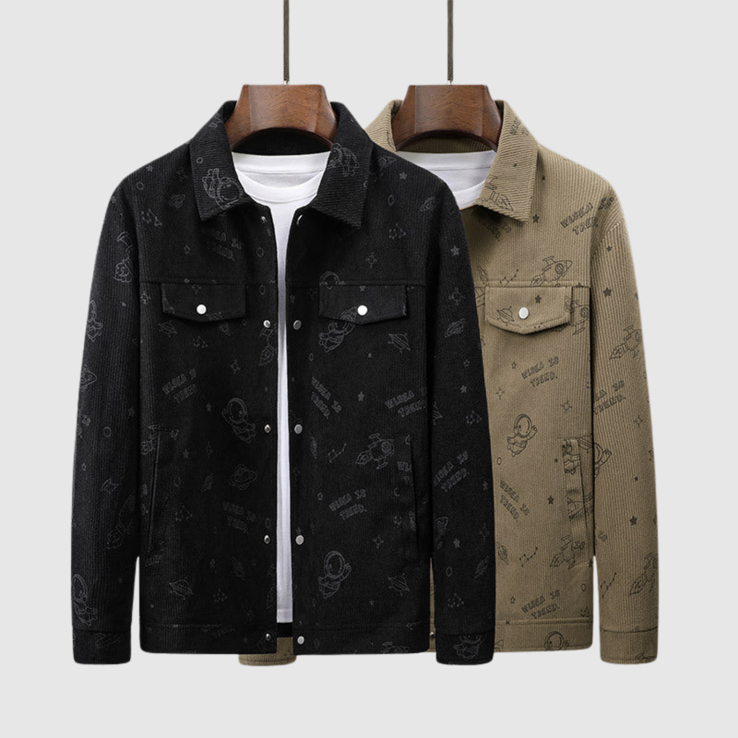 Стелар якето е изработено от мек, фино структуриран кадифе и е украсено с мотиви, вдъхновени от космоса, които придават впечатляващ вид. Практичните джобове на гърдите, здравите копчета и универсалното тегло го правят идеално за ежедневието и стил на наслагване през цялата година.