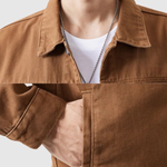 Якето Уорън е създадено от плътен, висококачествен памучен твил и има класически тракерен силует, вдъхновен от американски работни дрехи. Двойните джобове на гърдите, прецизните шевове и здравите метални детайли правят това яке както стилно, така и издръжливо – перфектно за многослойно облекло през цялата година.