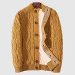 Този плетен кардиган комбинира класически кабелен плет с мека подплата за максимален комфорт. С копчета отпред и вечен дизайн, той е перфектен за ежедневието и хладни вечери. Задължителен елемент в зимния гардероб.