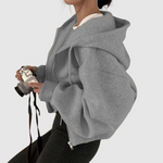 Тази къса худи съчетава отпуснат дизайн с модерен стил. Перфектна за слоести аутфити или като неформален акцент в ежедневието.