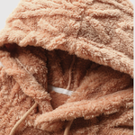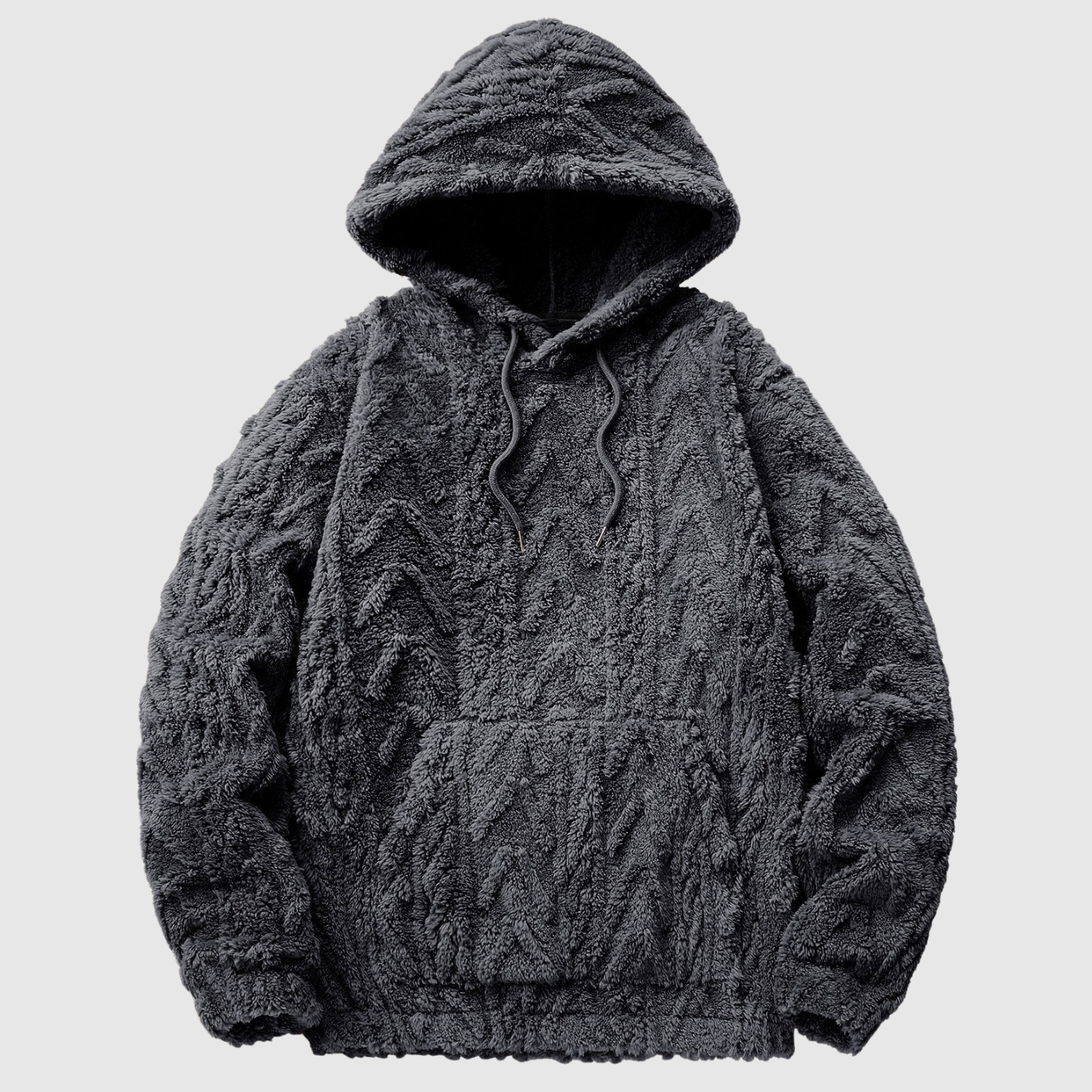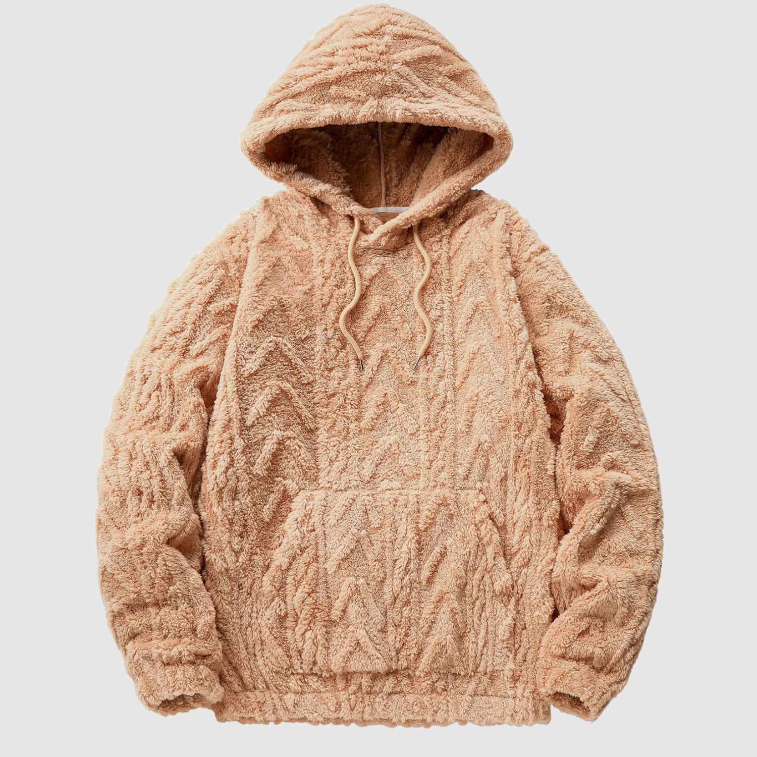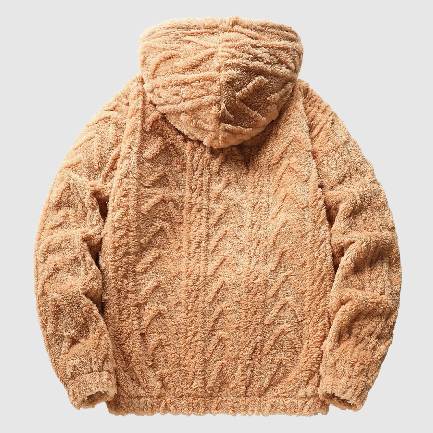 Това худи комбинира уютен комфорт с уникална кабелна шарка. Меката теди тъкан предлага луксозно усещане и ви държи топло в хладните дни. Перфектно е както за спокойни делници, така и за уютни вечери.