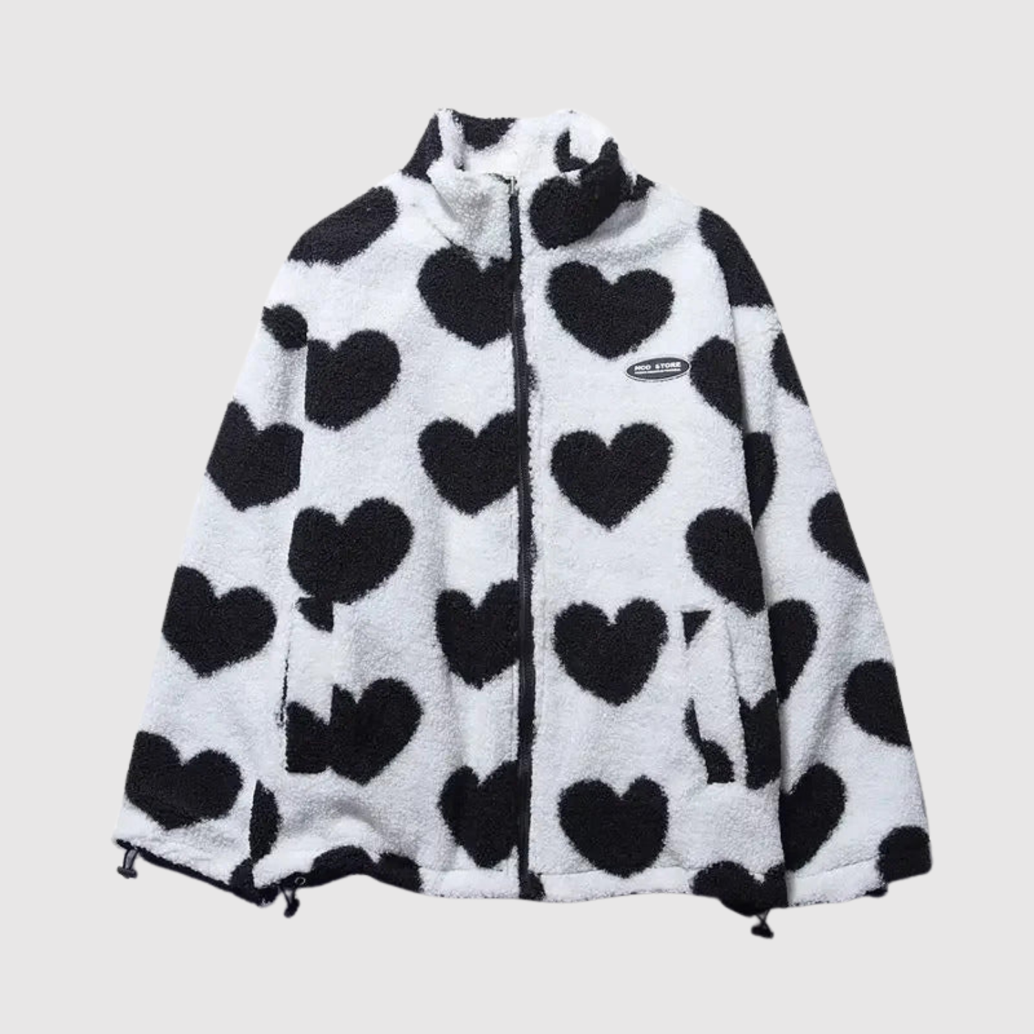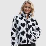 Този флийс суитшърт внася уют и чар в ежедневието ви. Уникалният принт на сърца и пухкавата текстура придават игрив, но стилен вид, идеален за студени дни и релаксиращи моменти.