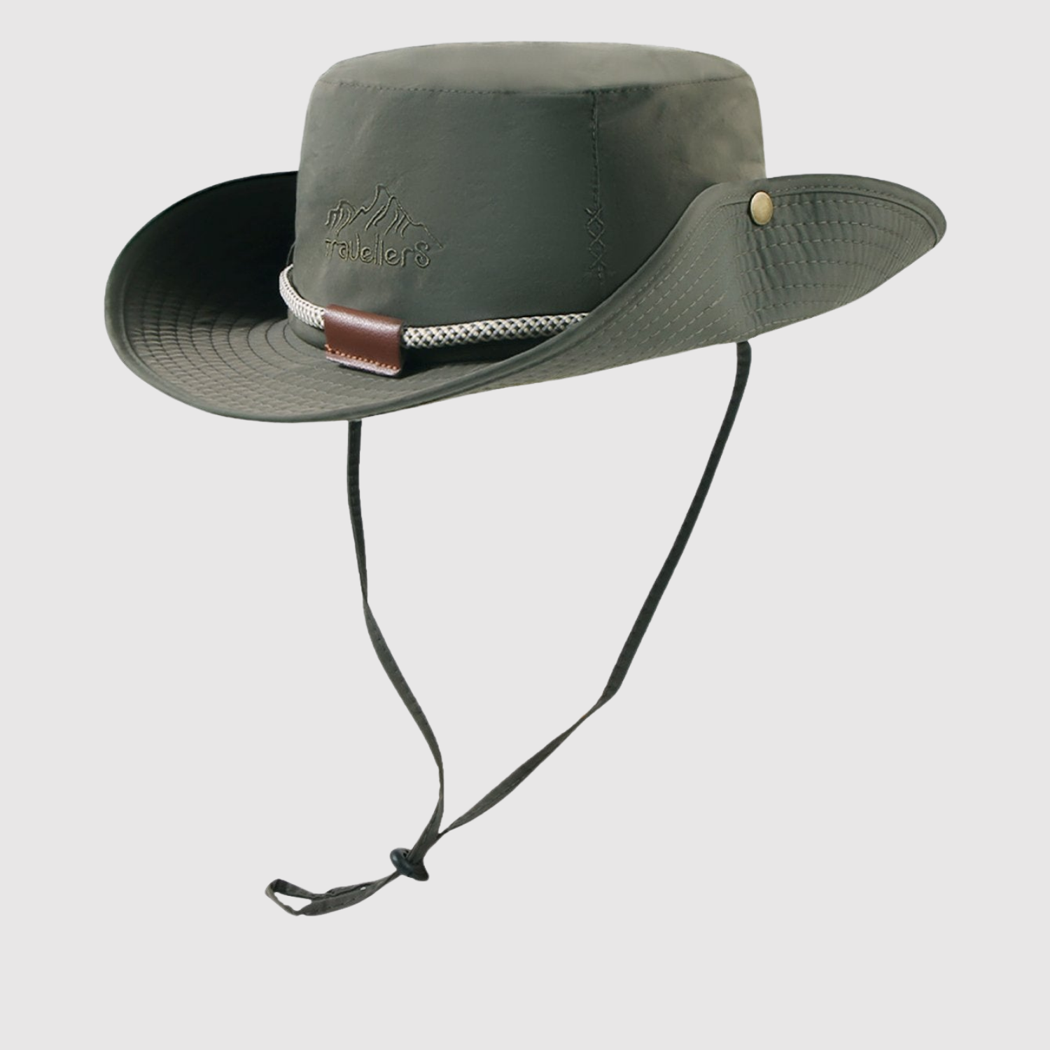 Тази слънчева шапка комбинира функционалност и стил с широката си сянка и регулируеми връзки. Перфектна за походи, риболов, градинарство или дни на плажа, където както комфортът, така и защитата от слънцето са важни. Универсален избор за мъже, които искат практичен, но модерен вид.