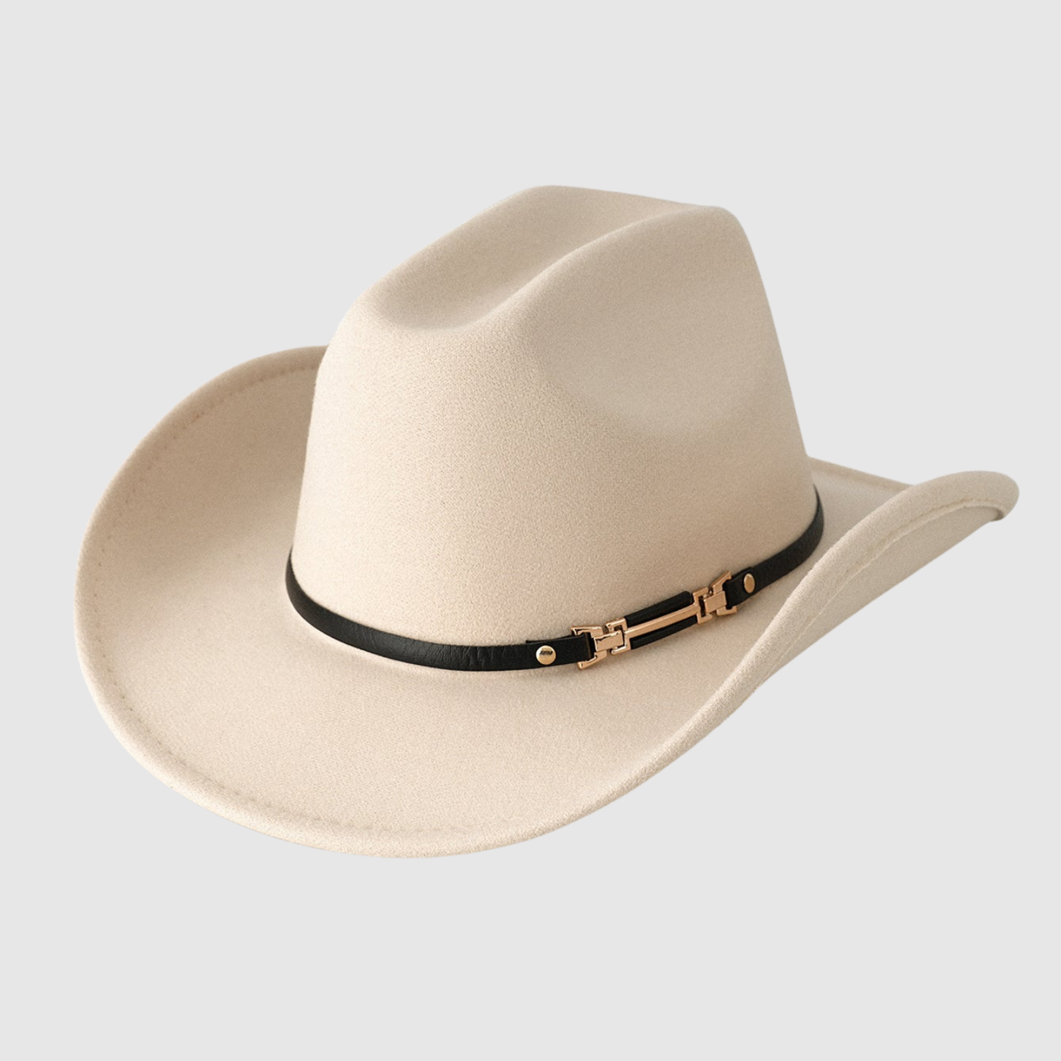 Тази каубойска шапка комбинира автентична уестърн естетика с комфорт и издръжливост. Изработена е от леко филтово материало, което я прави идеална за ежедневна употреба и специални поводи. Широката периферия осигурява ефективна защита от слънцето, докато детайлът от лента добавя стилен акцент.