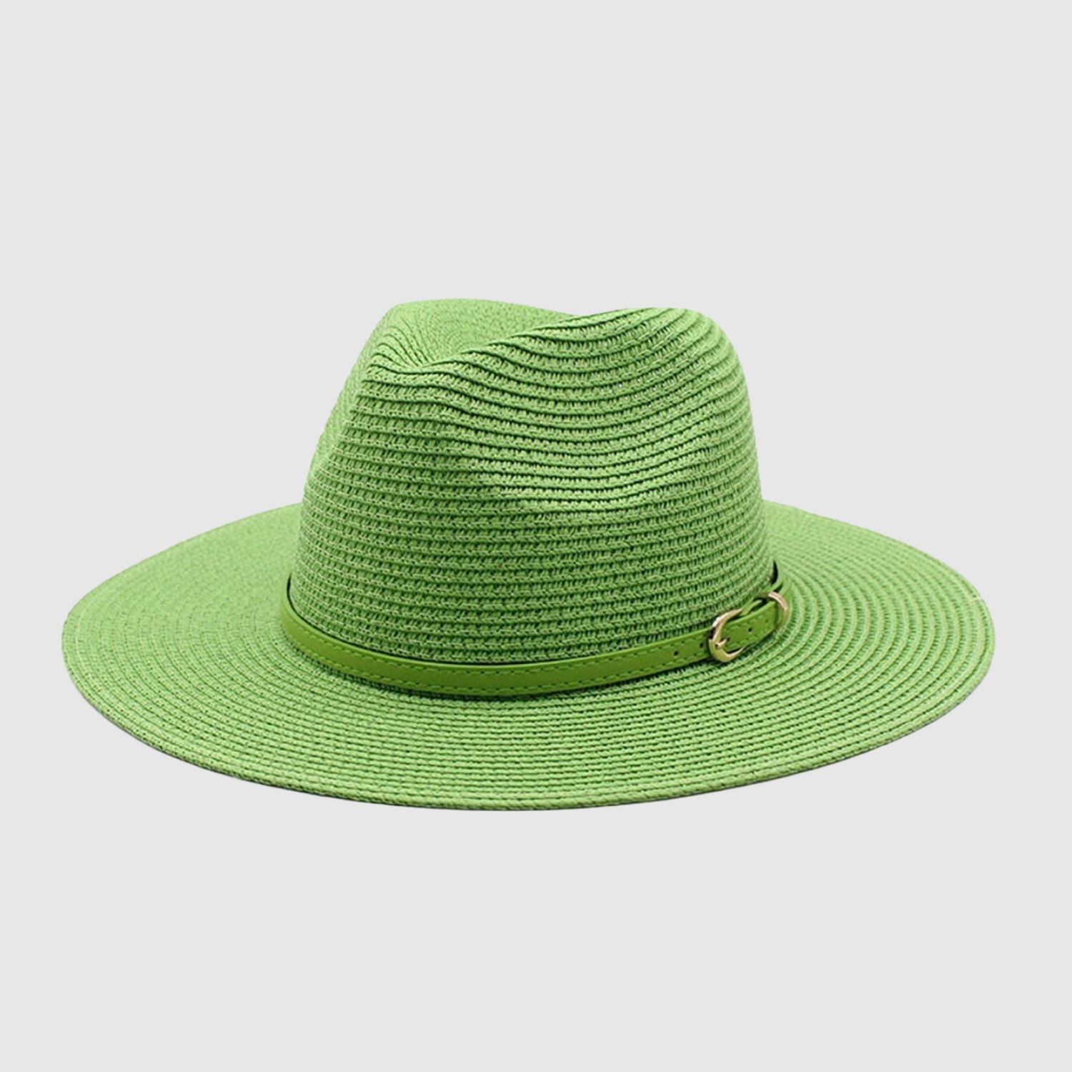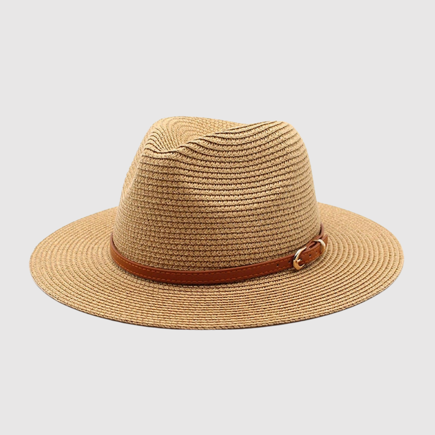 Класическа слънчева шапка с вид на слама, налична в широк спектър от цветове, за да можете да съчетаете собствения си стил. Тя е лека, удобна и предлага ефективна защита от слънцето. Перфектна за летни дни, плажни разходки и ваканции, където стилът и функционалността са важни.