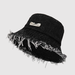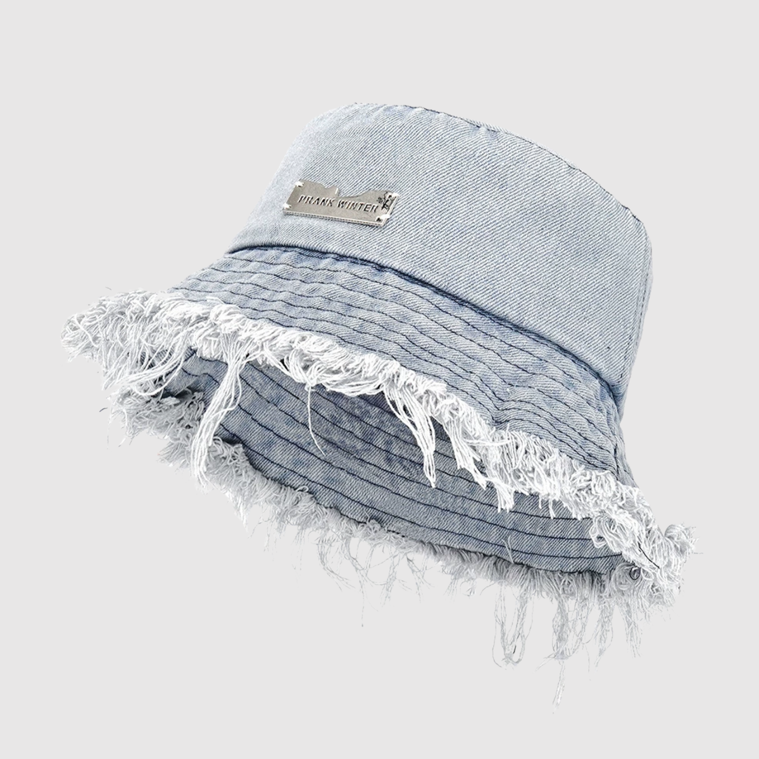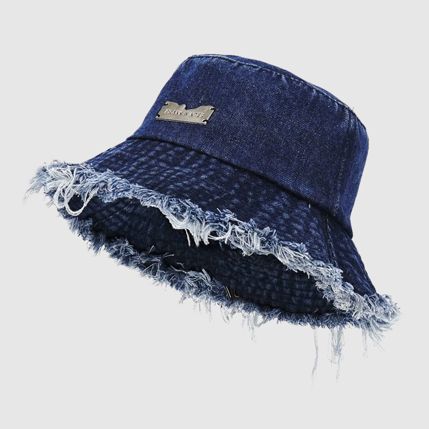 Шапка тип "бъкет" от издръжлив дънков плат с груби, дизайнерски детайли по ръба, които придават остър и модерен вид. Шапката съчетава стил на уличната мода с комфорт, което я прави перфектна за ежедневна употреба и неформални облекла. Необходимо аксесоар за вас, който желаете да постигнете изразителен вид.