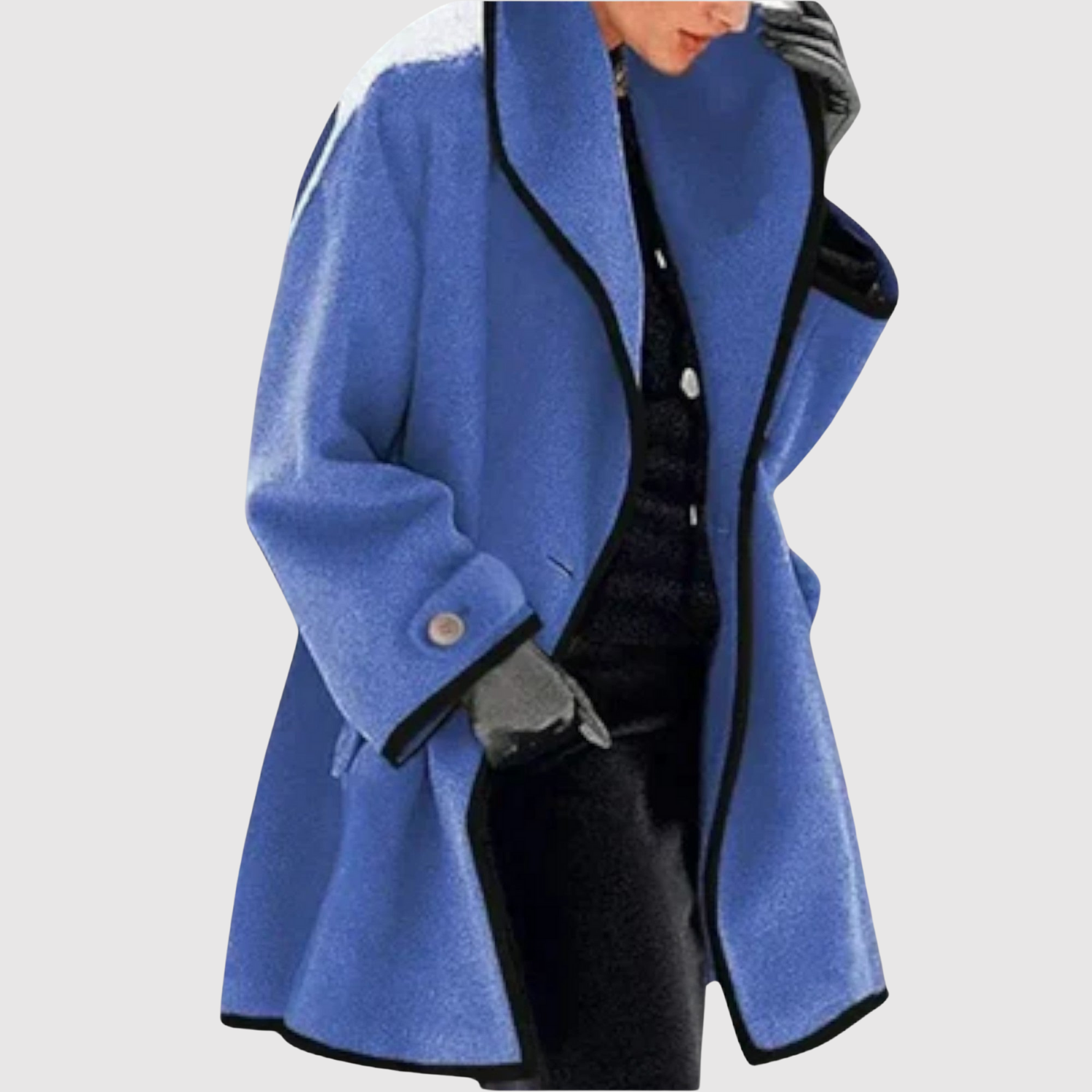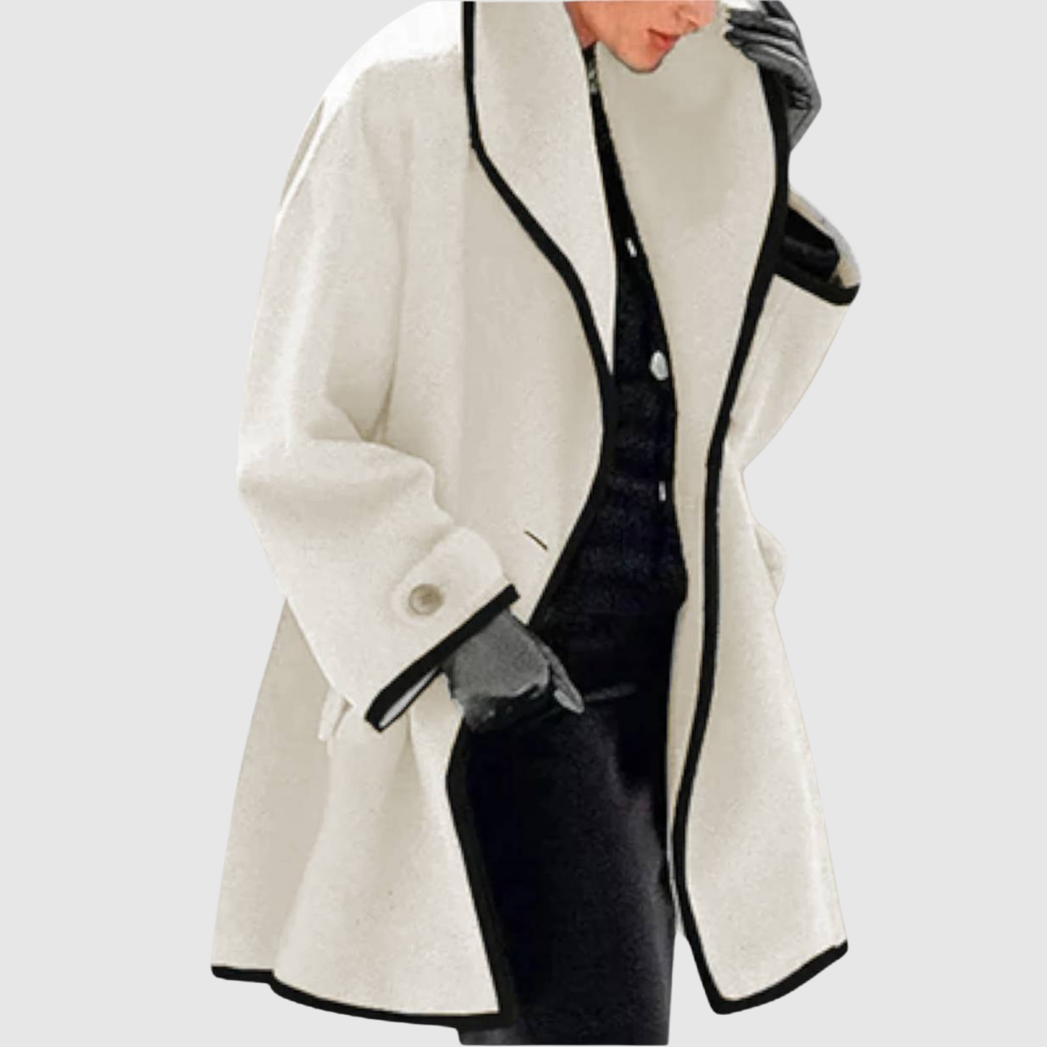Това палто комбинира изискан силует с модерни контрастни детайли. То е както практично за студените дни, така и достатъчно елегантно, за да повдигне всяко облекло.