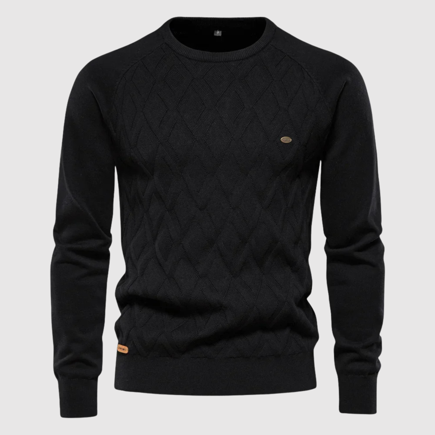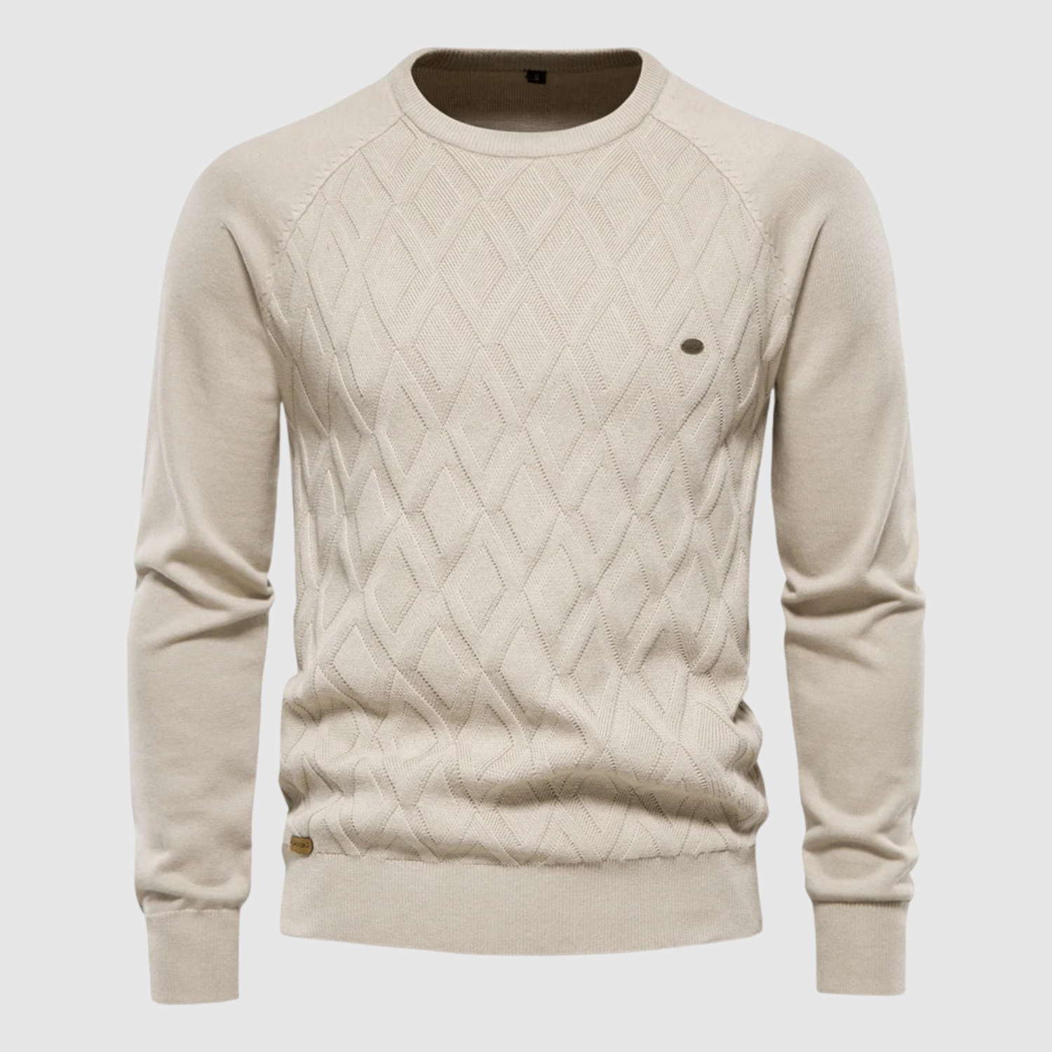 Този пуловер комбинира класическа елегантност с модерен силует. Характерният диамантен модел придава изискан вид, докато мекото и топло материало го прави перфектен за студени дни със стил.