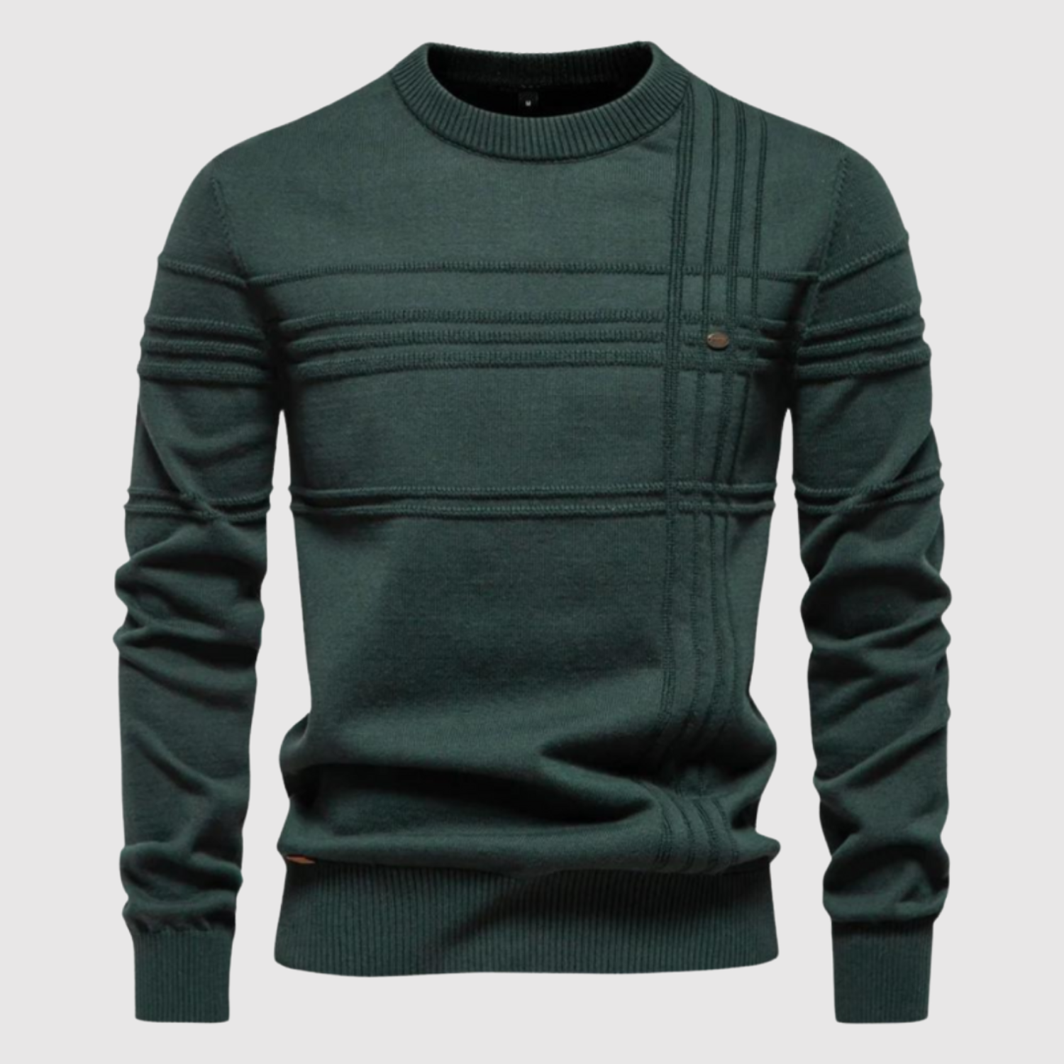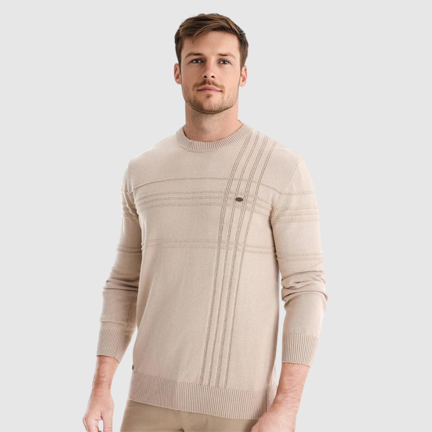 Този пуловер комбинира проста елегантност с комфорт. Дискретните линейни детайли на гърдите придават модерен и изтънчен вид, докато мекото материал ви държи топло, без да се чувства тежко. Перфектен както за работа, така и за свободно време.