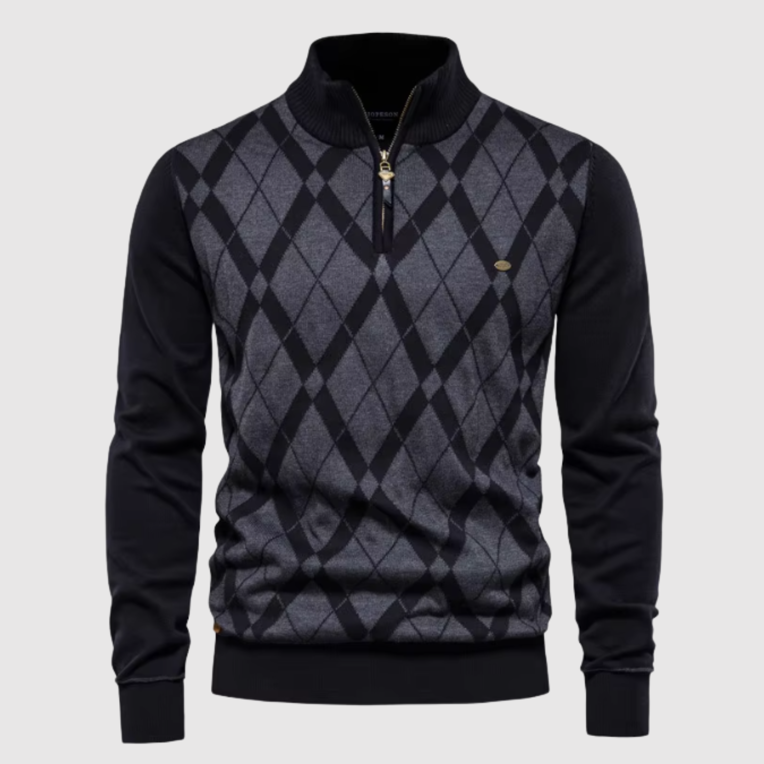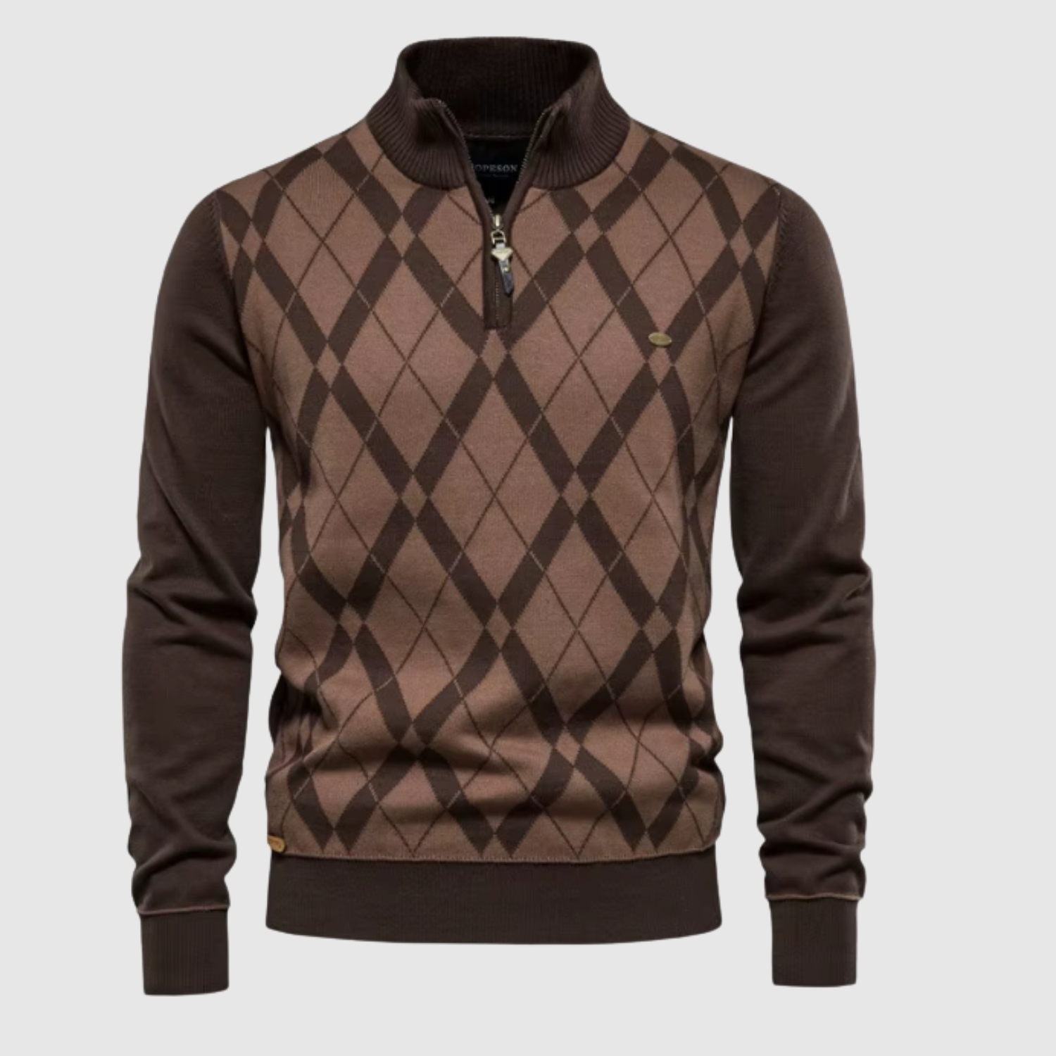 Стефан - Аргайл Стилна Джемпер с цип и висока яка