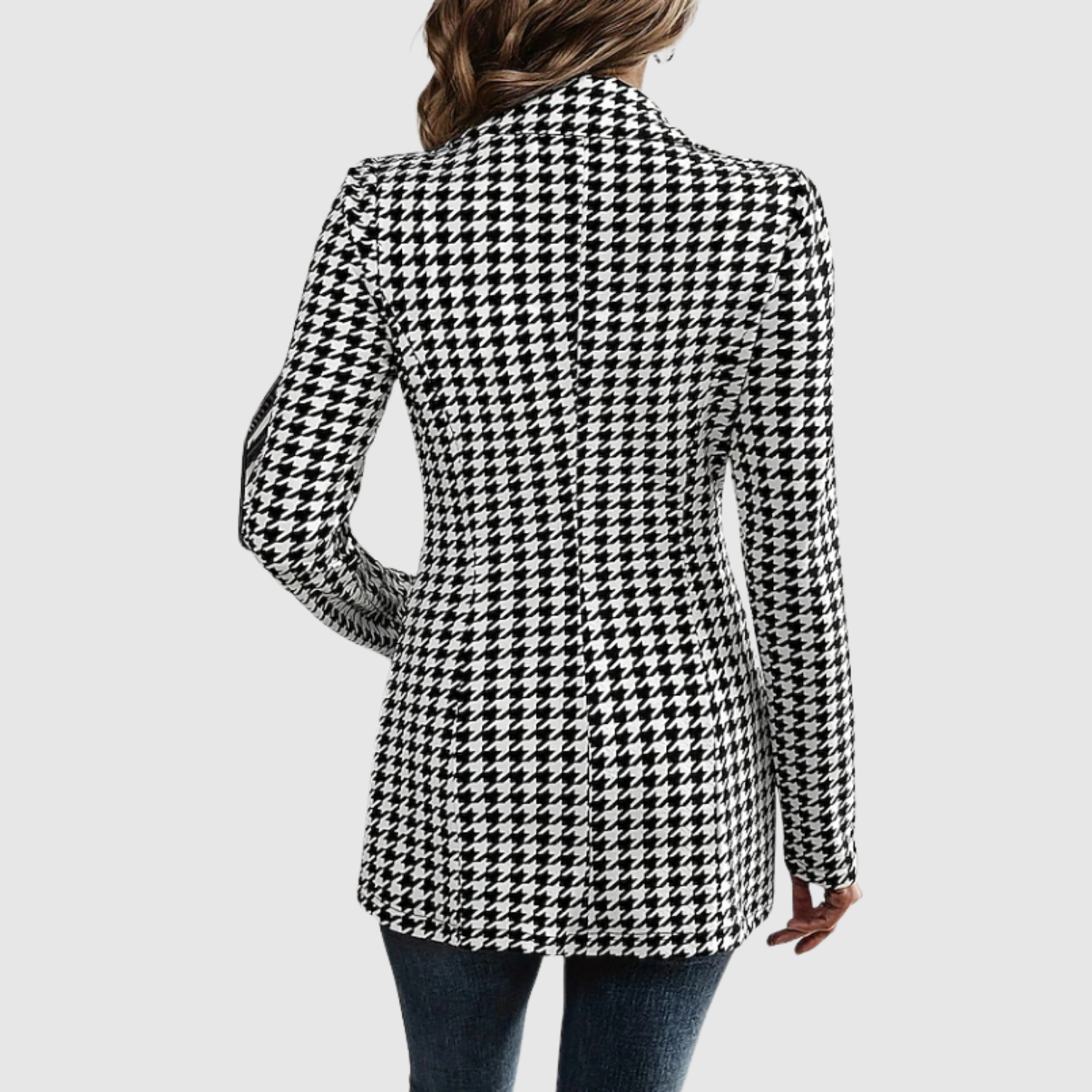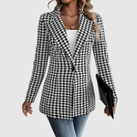 Този блейзер с каре придава изтънчен вид, който повдига всяко облекло. Структурираният кройка в комбинация с класическия модел го прави любимец в гардероба.