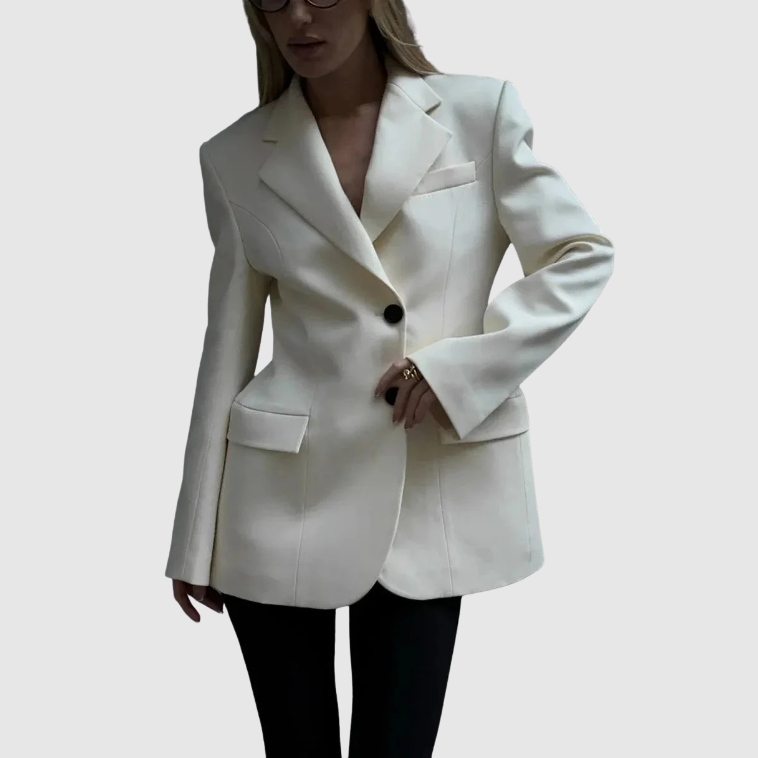 Този блейзър съчетава остър кроеж с женствени линии. Перфектен както за професионални визии, така и за елегантни вечерни тоалети.