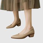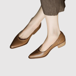 Тези обувки съчетават изчистен дизайн и практична елегантност. Изработени от мека кожа с удобен нисък ток, те са подходящи за офиса, ежедневието или специални случаи. Деликатната им линия придава финес и увереност на всяка стъпка.