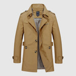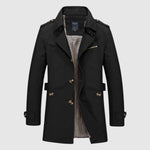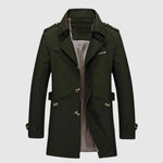 Това дълго палто комбинира изтънчеността на винтидж дизайна с модерна функционалност. Структурираната кройка подчертава мъжката силуета, докато подплатеното вътрешно пространство осигурява комфорт и топлина в хладни дни. Перфектно за всякакви поводи – от формални срещи до градски разходки.