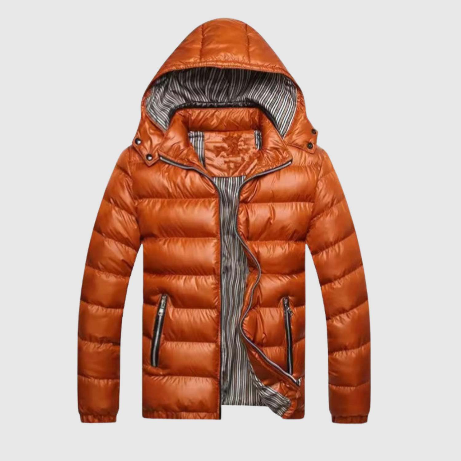 Стилно, подплатено зимно яке с леко блестящо покритие, което придава спортен и модерен вид. То ви държи топло в студените дни, като същевременно е леко и удобно за носене. Перфектна комбинация от функционалност и градски стил.