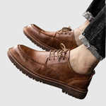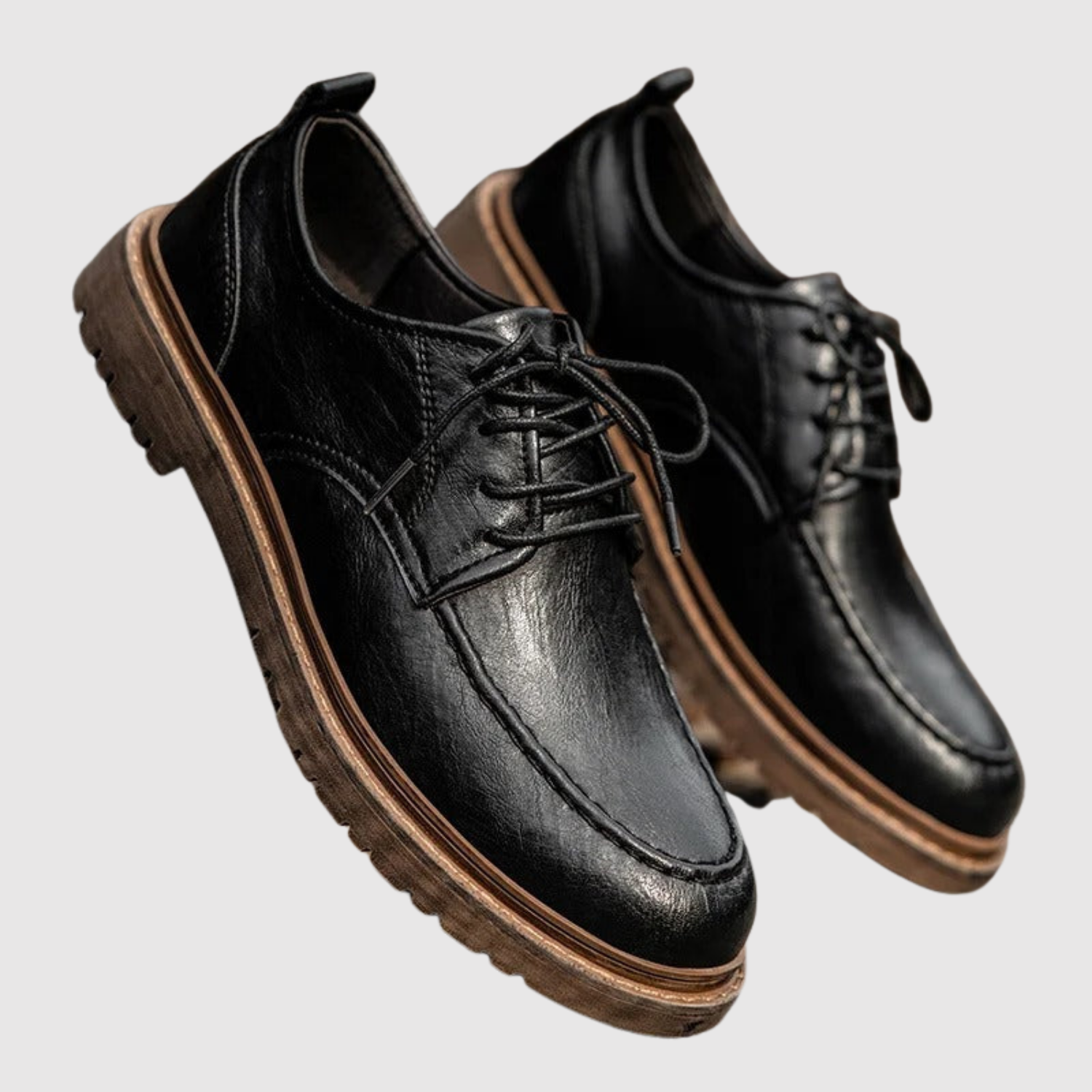Тези мъжки обувки съчетават класическа елегантност с модерна, здрава подметка, която осигурява максимален комфорт в ежедневието. Вечният дизайн ги прави лесни за комбиниране както с формални, така и с неформални облекла. Перфектни за мъжа, който търси обувка, която е едновременно стилна и практична.