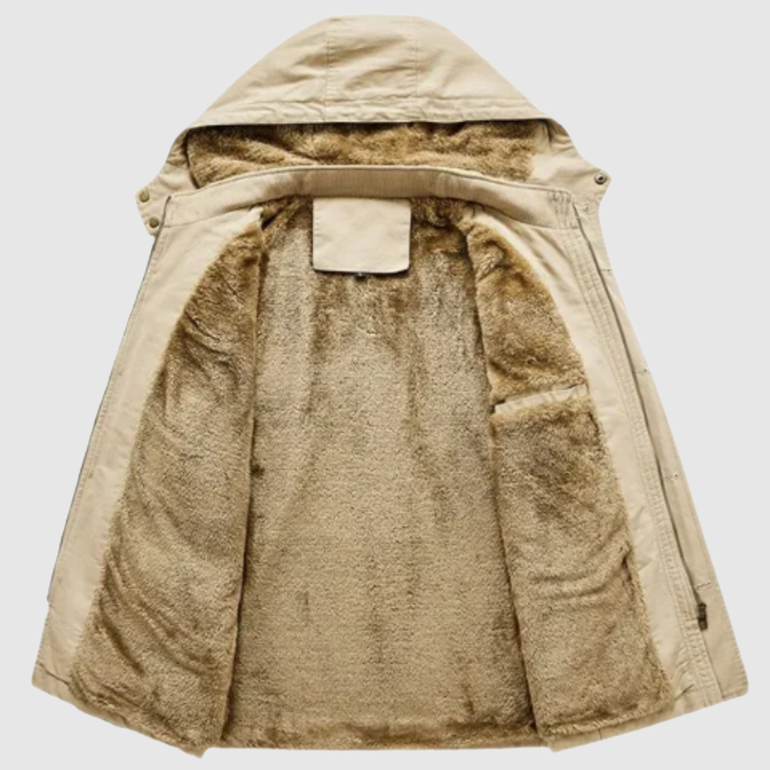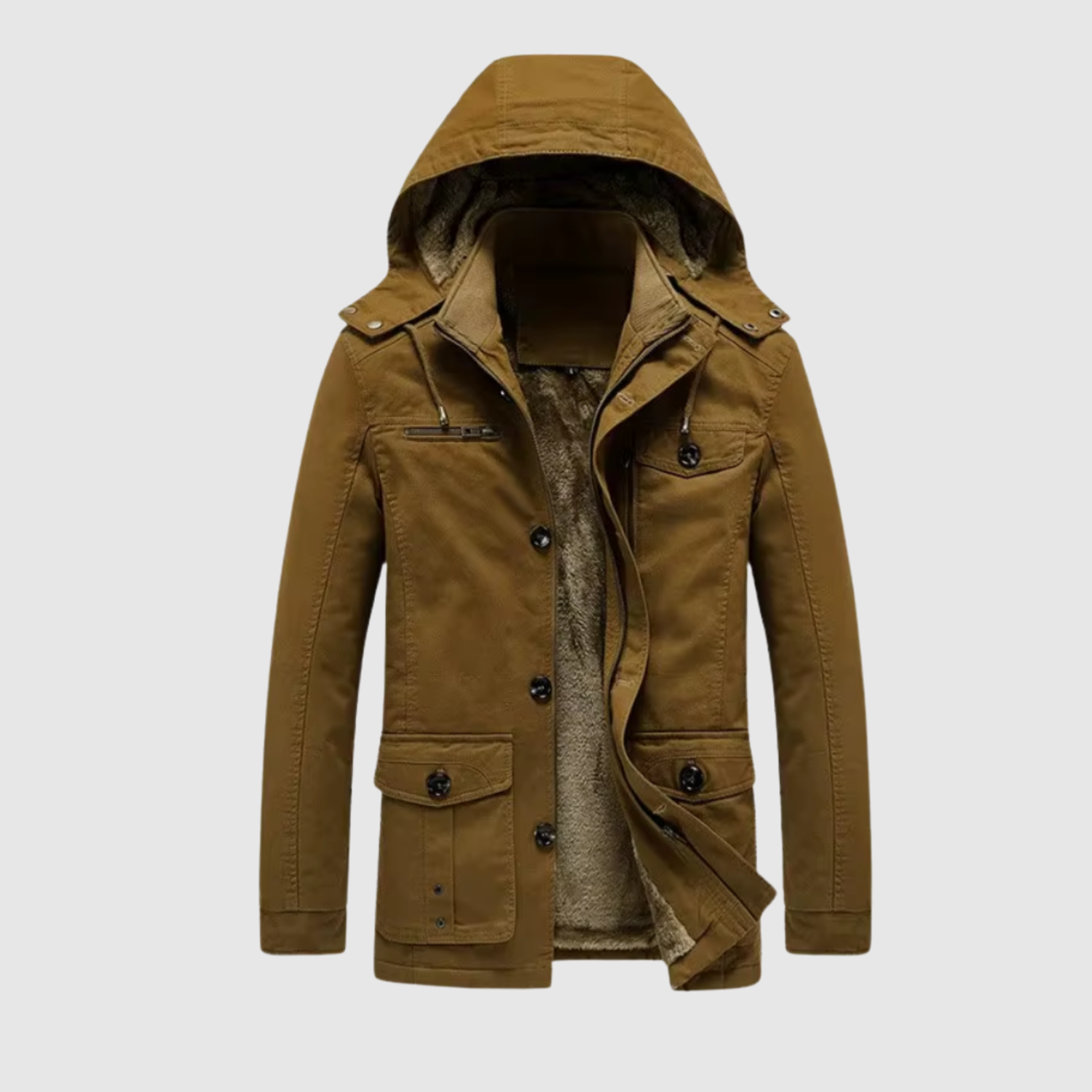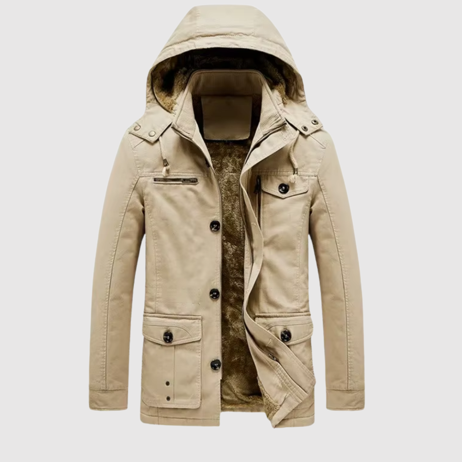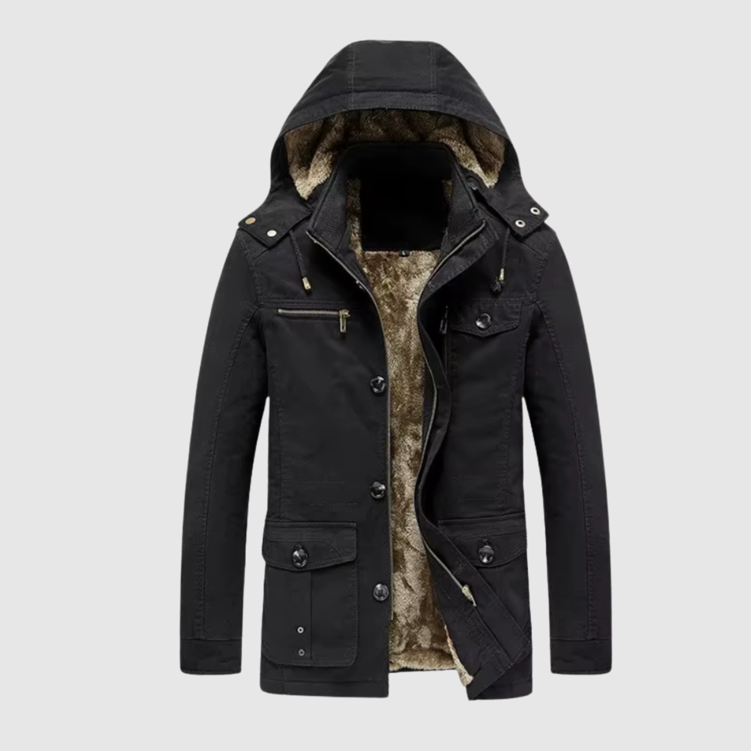 Това зимно яке е създадено за мъже, които ценят изисканата визия и практичността. Вълнената подплата осигурява отлична топлина, докато устойчивата материя предпазва от студ и вятър. Идеално за градска среда и ежедневна елегантност.