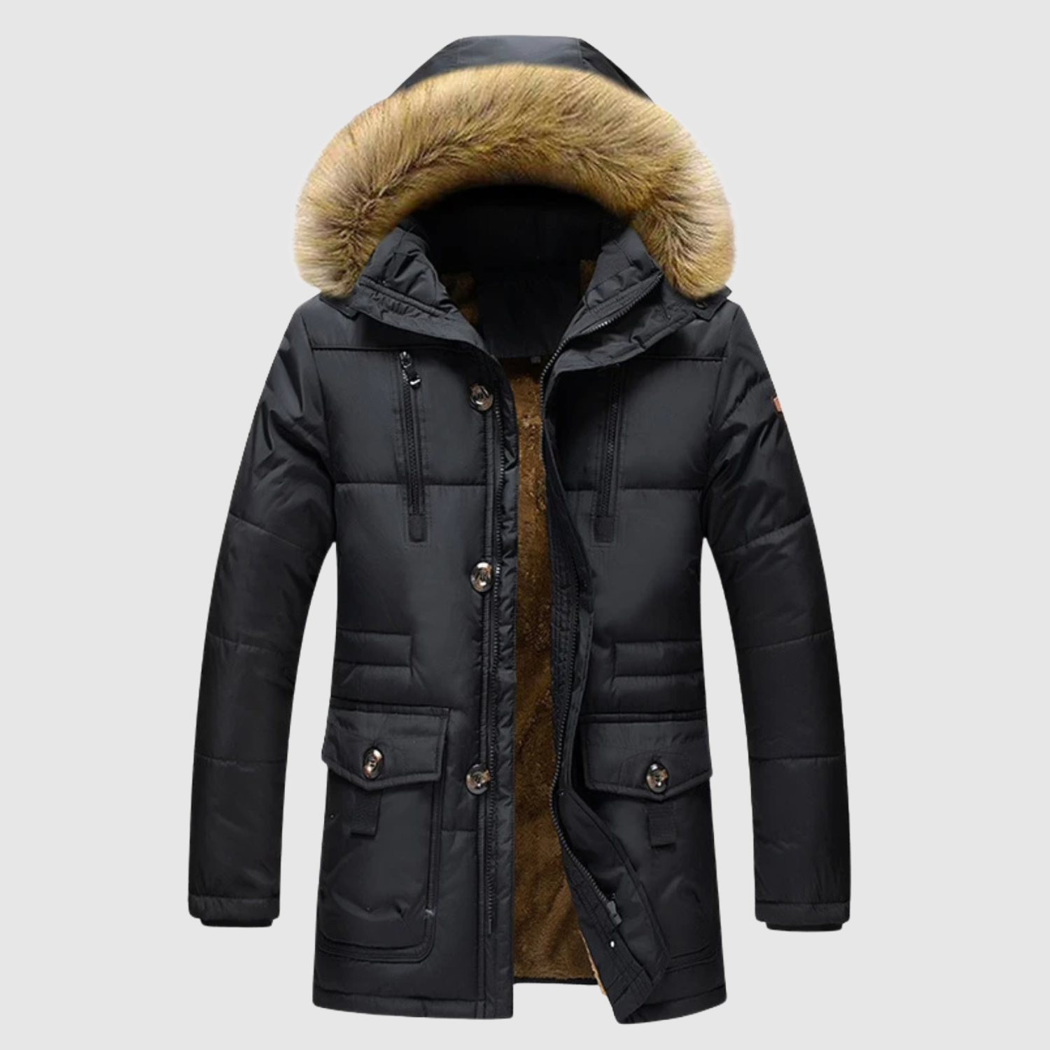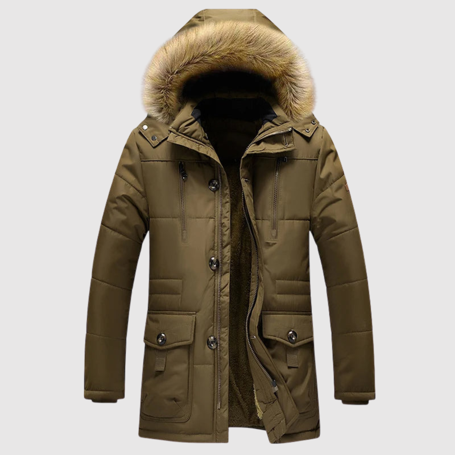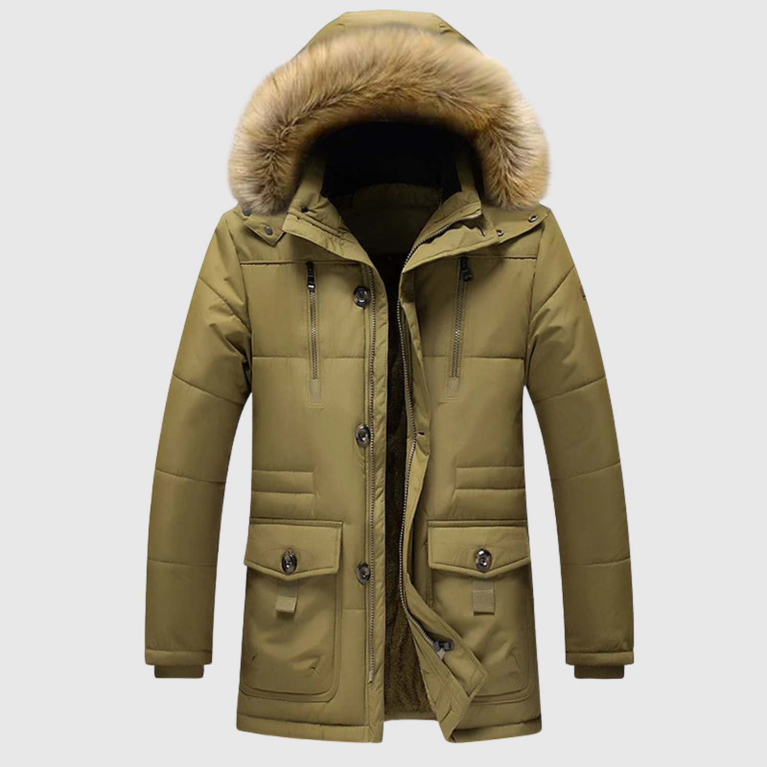 Това яке е създадено за мъже, които искат стил и защита в студеното време. Пухената качулка предлага комфорт и изолация, а здравата външна тъкан предпазва от вятър и влага. Класическата кройка с практични джобове съчетава елегантност и функционалност.