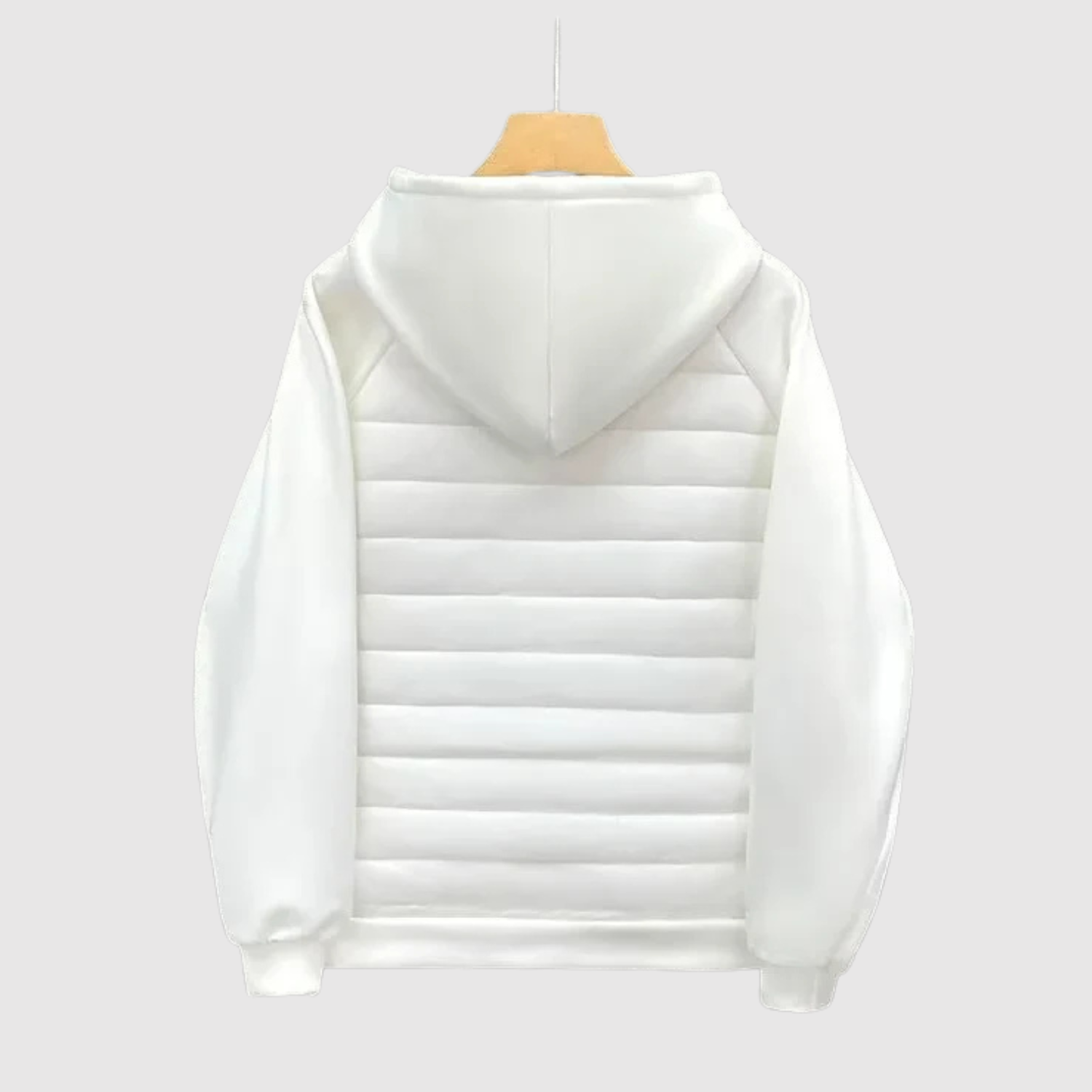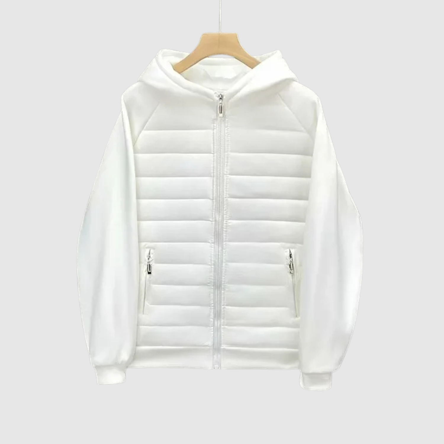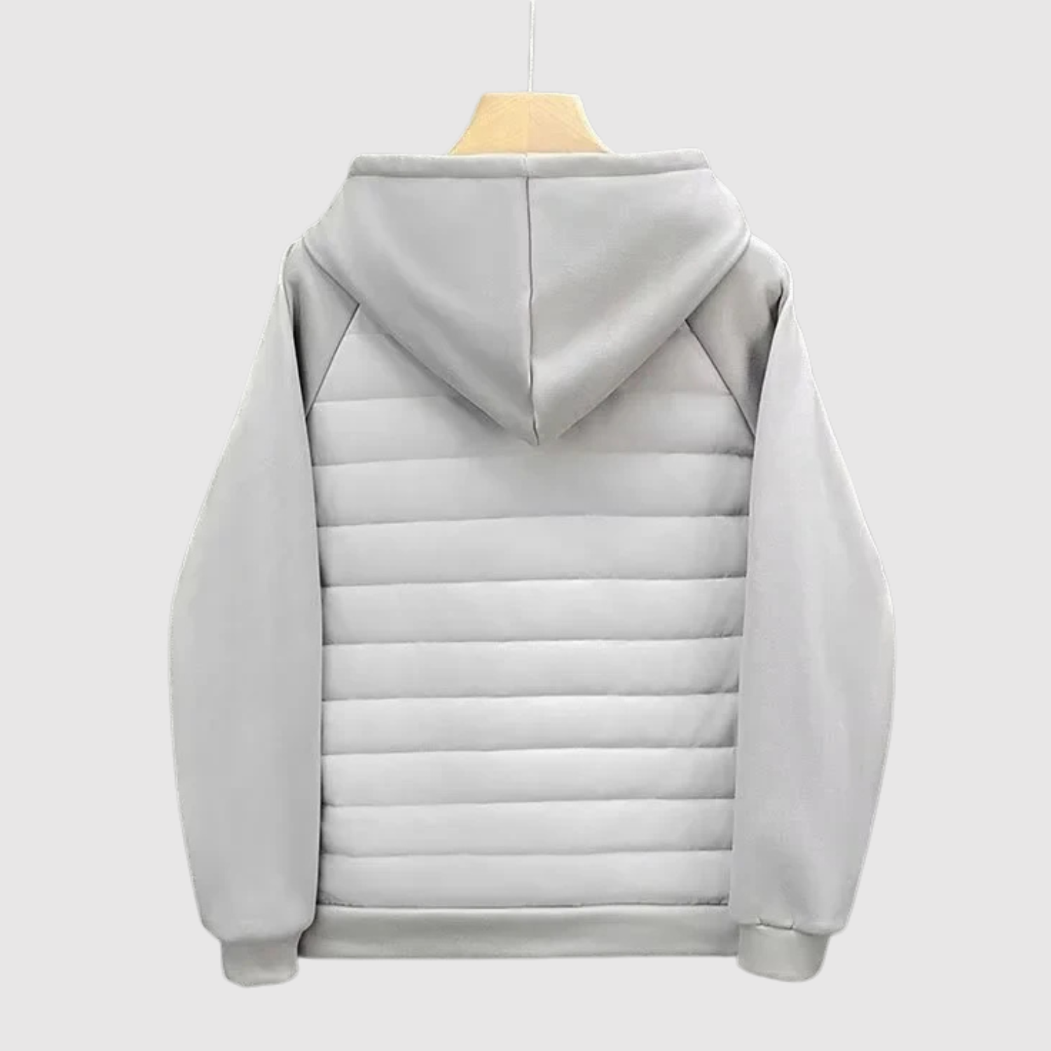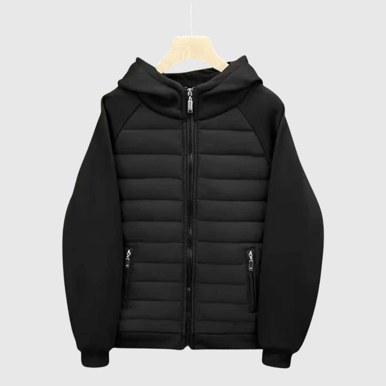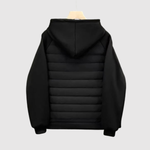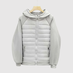 Това яке съчетава спортен стил и удобство в едно. Съчетава подплатено тяло за топлина и меки ръкави от памучна материя, които осигуряват свобода на движение. Идеално за преходните сезони и градския начин на живот.